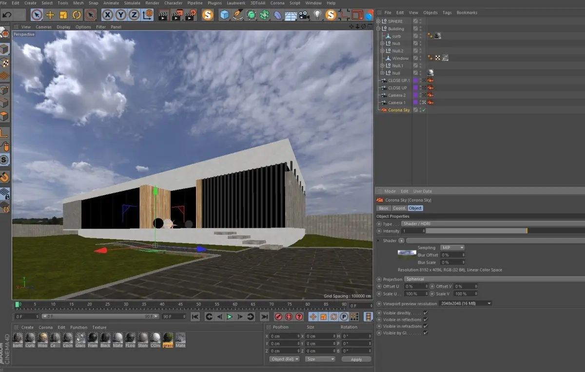 Exterior Sun with HDRI Clouds Cinema4D Corona renderer