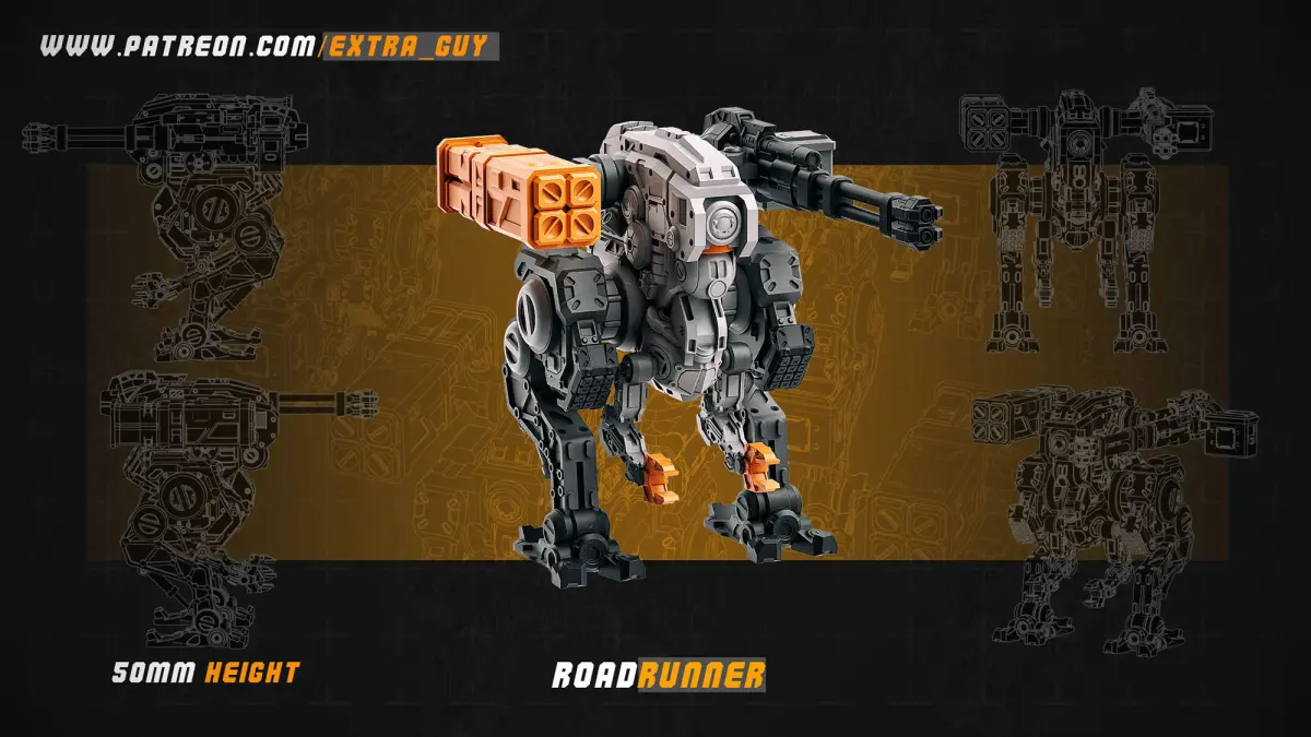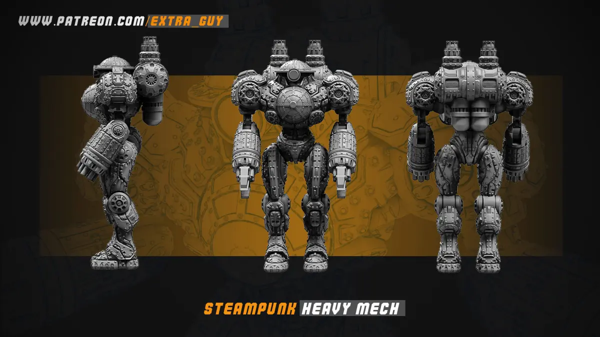 www.patreon.com/Extra_Guysave 27 bucks with this bundleApril Batch Release Mech BundleAssets IncludeDefensive Turrets (4 weapon types plus spacers for height variation)Roadrunner 70mm and 50mm (jointed and arm/leg pose variation)Sparrow Dropship 35mm Steampunk Heavy Mech 140mm and 100mm (jointed and arm/leg pose variationTracked Mech 70mm and 50mm (jointed)Files included insideUnsupported and Supported STLsLychee Source Files