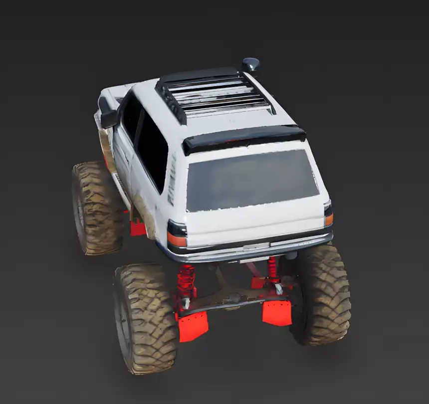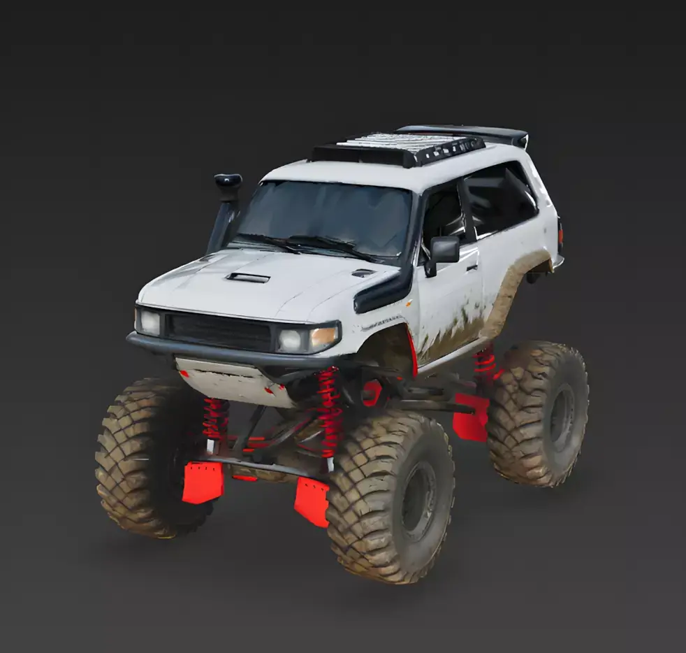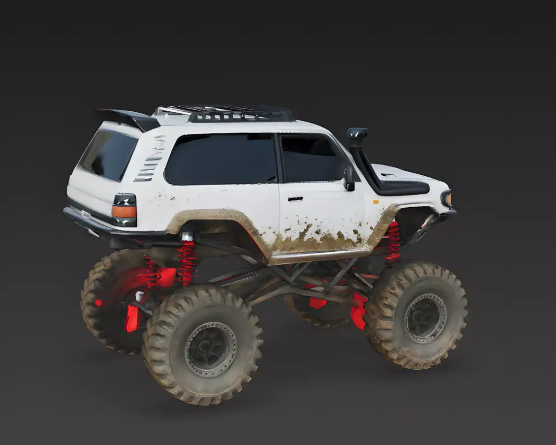 The Overall Concept This asset is a standard SUV that has been heavily modified into a monster truck. It is built for extreme off-roading, mud bogging, or rock climbing, making it perfect for a racing game or an adventure simulation in rough terrain.