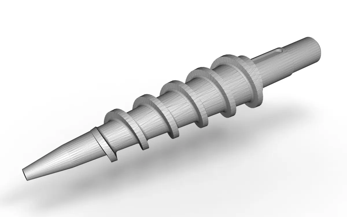 Extruder conical screw. It's Solidworks model was exported in other CAD formats:(X_T, IGES, STEP, OBJ and STL). This 3D model can used in producing on CNC machines and for 3D printing.