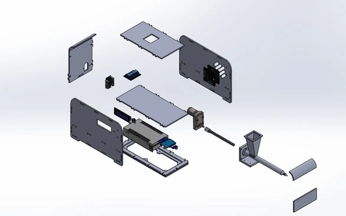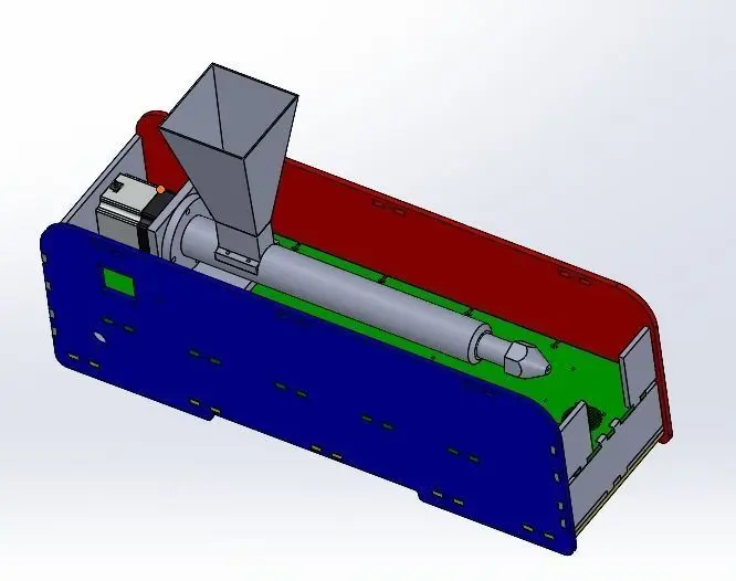 Filament extruder machine for 3D printer with electronic parts and device assembly