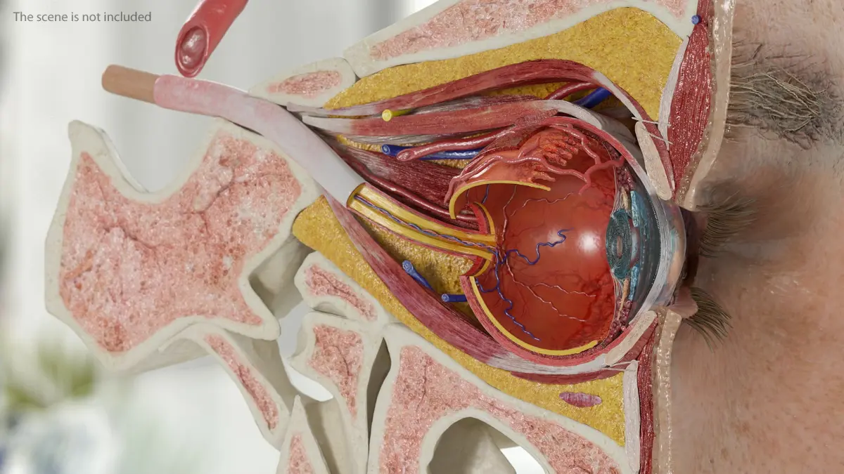 Eye Anatomy Cross-Section is a high quality, photo real 3d model that will enhance detail and realism to any of your rendering projects. The model has a fully textured, detailed design that allows for close-up renders, and was originally modeled in 3ds Max 2012 and rendered with V-Ray. Renders have no postprocessing.