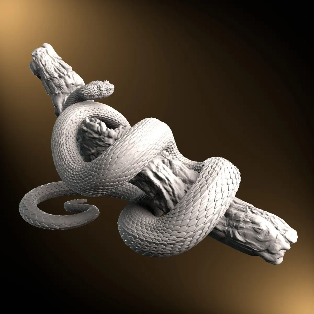 Three poses for the expressive Eyelash Viper! Support well, print and paint in just about any color.
