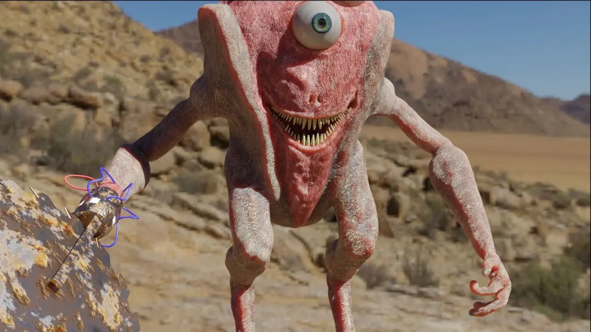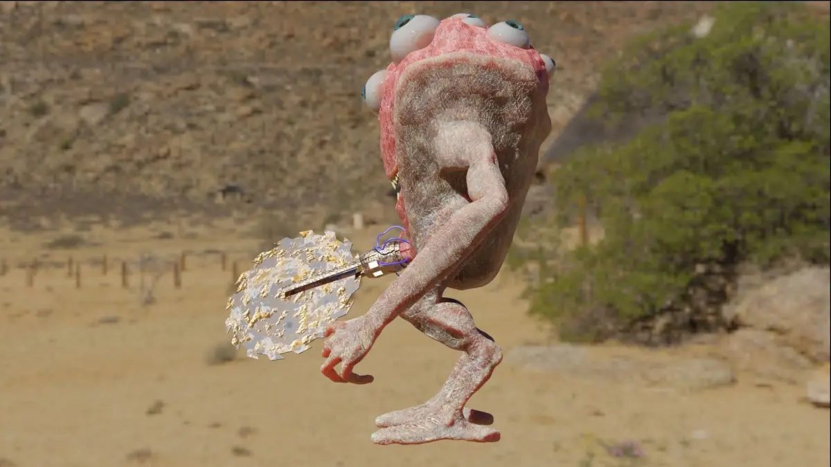 This is supposed to be a semi realistic monster. I retopologies it and UV-unwrapped it. The multi-res modifier has a subdivision level of five, but you can change it for faster render time and if you don´t need the amount of detail, plus you can sculpt on top of it if you’d like to and your own detail to it. The model is equipped with a hair-particle system for a little extra realism. I´ve used a simple rig for movement, it is equipped with an IK-system on the arms, legs, and hip for easier and faster animation flow. The eyes and the blade of the saw are rigged with empties instead of bones. The blade is equipped with an object constrain in which it limits the rotation on the axes the blade can rotate in.