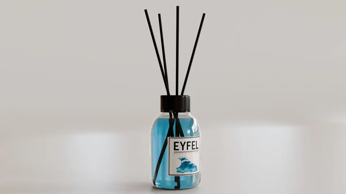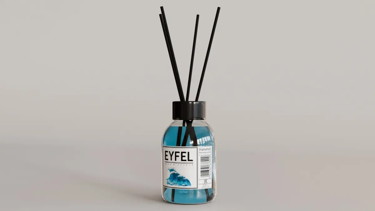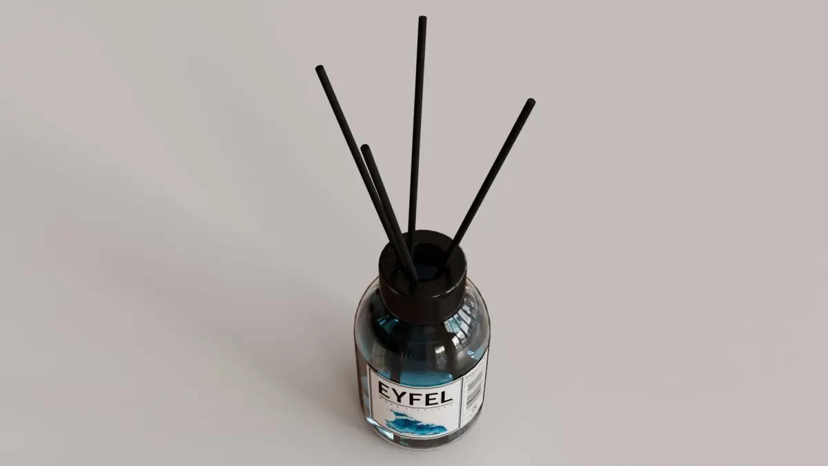 Photorealistic, high-quality 3D model of 'Eyfel Perfume Reed Diffuser Ocean' Created with Blender 4.4. The model is suitable for Ultra HD rendering and ready for close up shots.The model rendering quality shown on product previews.