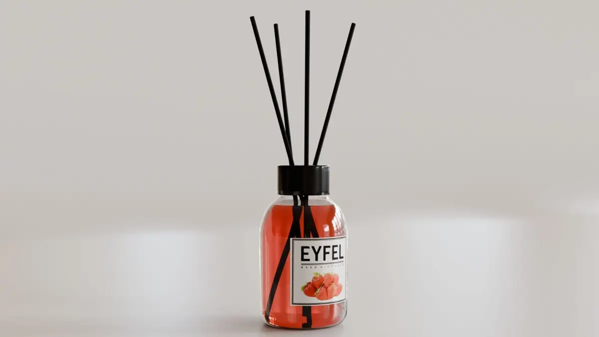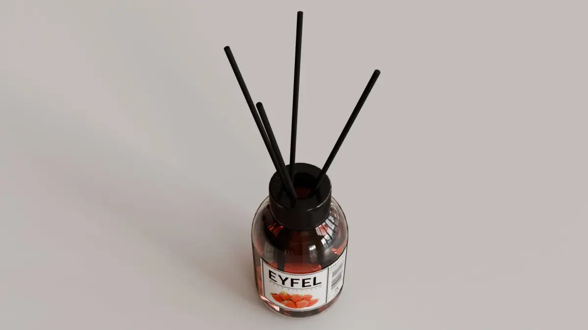 Photorealistic, high-quality 3D model of 'Eyfel Perfume Reed Diffuser Strawberry' Created with Blender 4.4. The model is suitable for Ultra HD rendering and ready for close up shots.The model rendering quality shown on product previews.