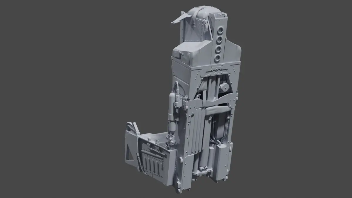 The F-15 version of the ACES II Ejection seat. Used in Fighter & strike attack versions of the Eagle. Fits nicely in the 1/48th Tamiya F-15C kit. Suitable for 3d printing in larger scales 1/35 and above using the Large Scale version, and for smaller scales, the slightly chunkier Small Scale version of the files can be used. The model is provided with or without straps, & with & without mounting rails. The objects are modelled in real world metric size. This seat is similar to the F-16 seat, but because it is mounted at a more vertical angle, the seat pan itself is a different shape, and angle, Additionally, the seat has two linked side ejection handles rather than leg restraints & there is no central pull handle.**Note: **The printed sample show above was 1/48th scale, **printed with no supports added, 0.5mm layer height, at the angle it was modelled. **Some supports on the base and legs restraint undersides are recommended. Use finer layer height for added detail.