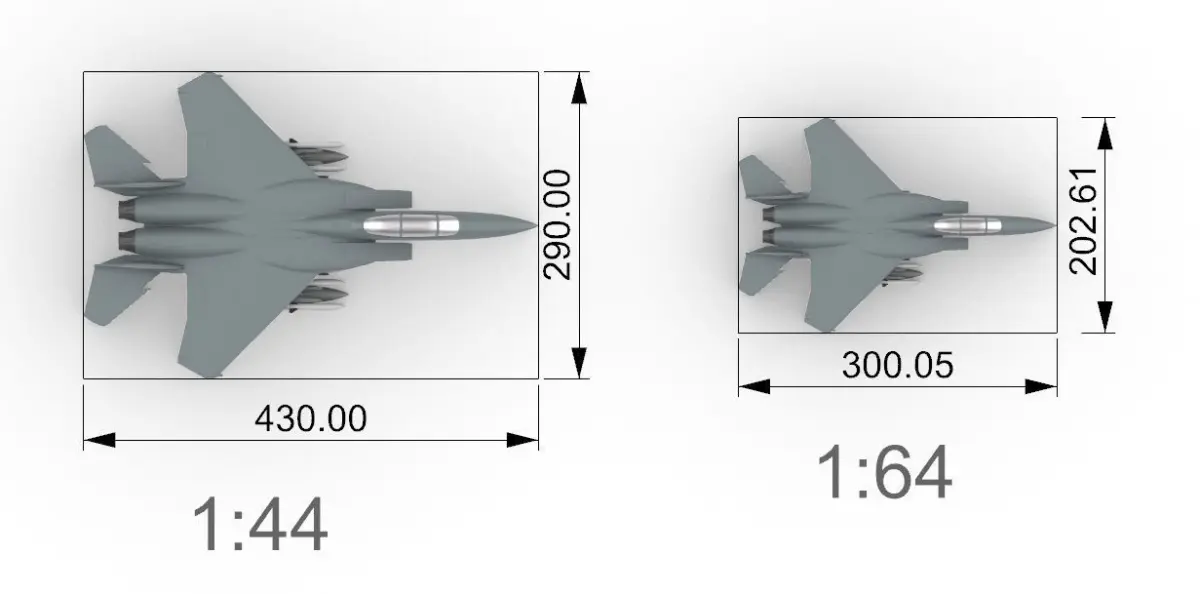 Model of the F-15 Eagle in 1:44 and 1:64 scale, high quality model.