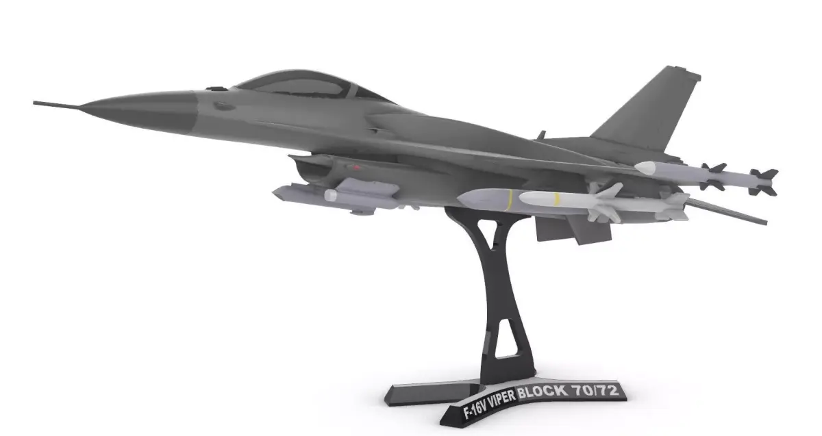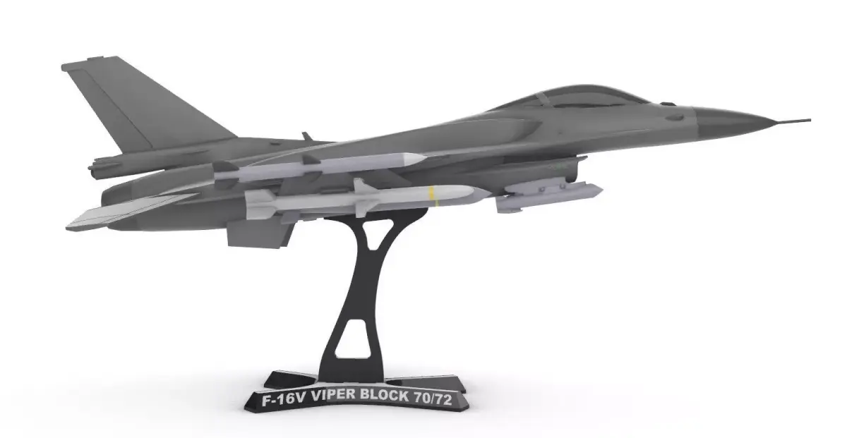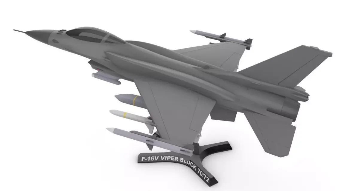This digital model represents the F-16V Viper Block 70/72 (1:35), the most modern and advanced version of the iconic single-engine fighter. The design stands out with the inclusion of conformal fuel tanks (CFTs) on the upper fuselage, providing a robust look while significantly increasing operational range without heavily sacrificing aerodynamics. Unlike other variants, this model maintains the classic dorsal spine silhouette, focusing on the visual accuracy of the Viper series. The aircraft is fully configured for air superiority missions, equipped with a specialized armament suite for both short and medium-range air-to-air combat, along with targeting pods for tactical support. The kit is designed modularly, with the main body, wings, and weaponry separated to simplify 3D printing and painting, and it includes a custom display stand for a professional and striking presentation in any collection.