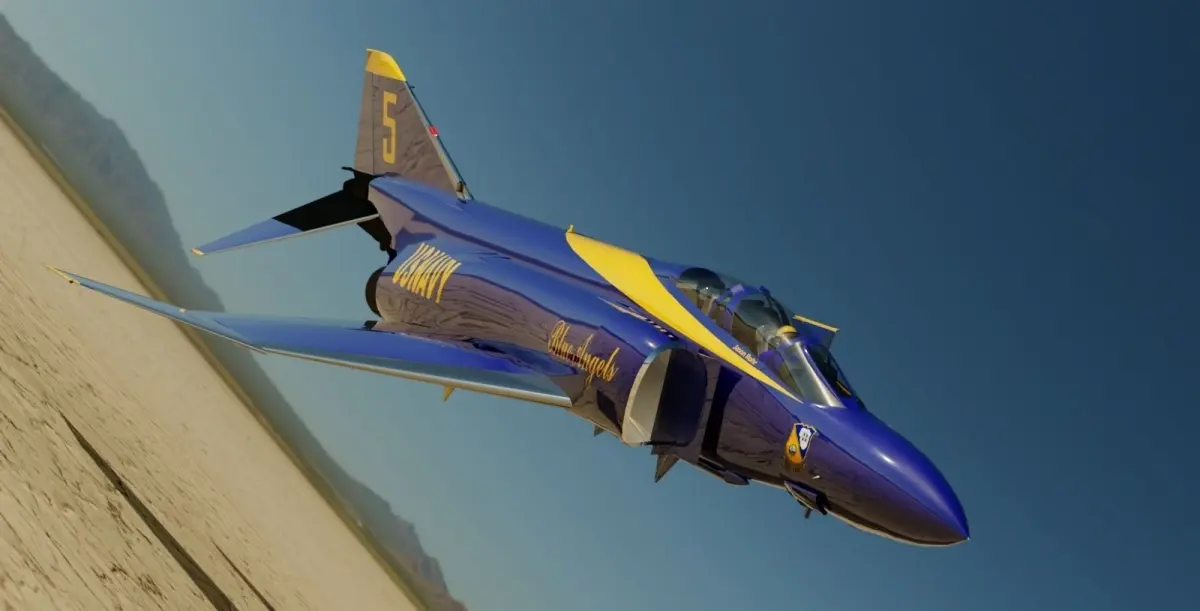 This is the F-4J Phantom II in Blue Angels #5 paint scheme. Precision, team work, unending dedication to perfection. Since its formation in 1946, these have been the traditions of the United States Navy Flight Demonstration Squadron - the Blue Angels.