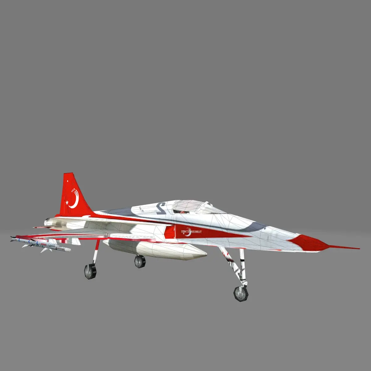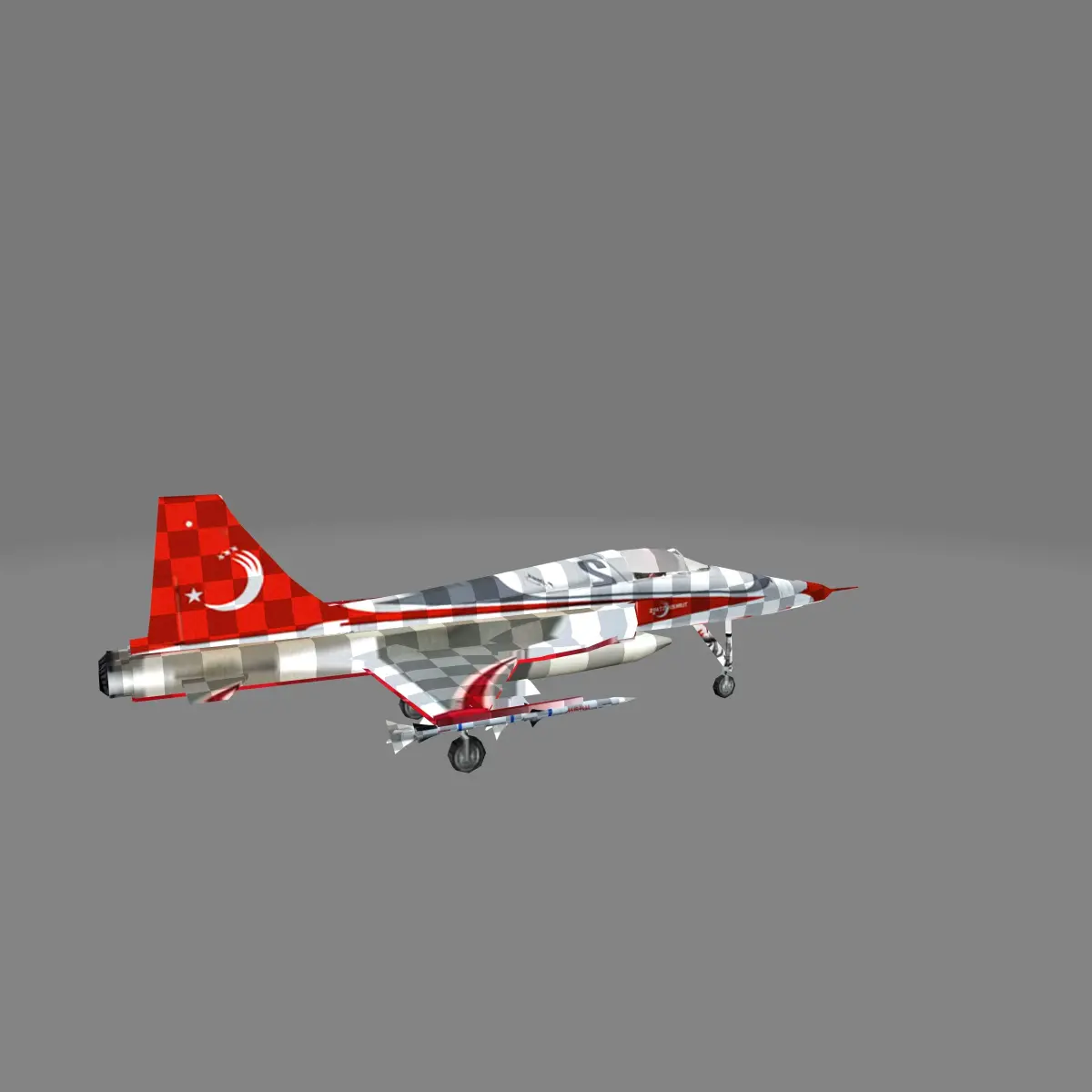 F5Warplane and training aircraft - American made - used by the Turkish Air Force. It is a Turkish model, one piece, not divided or fragmented, of low quality and with a total size not exceeding 1MB.