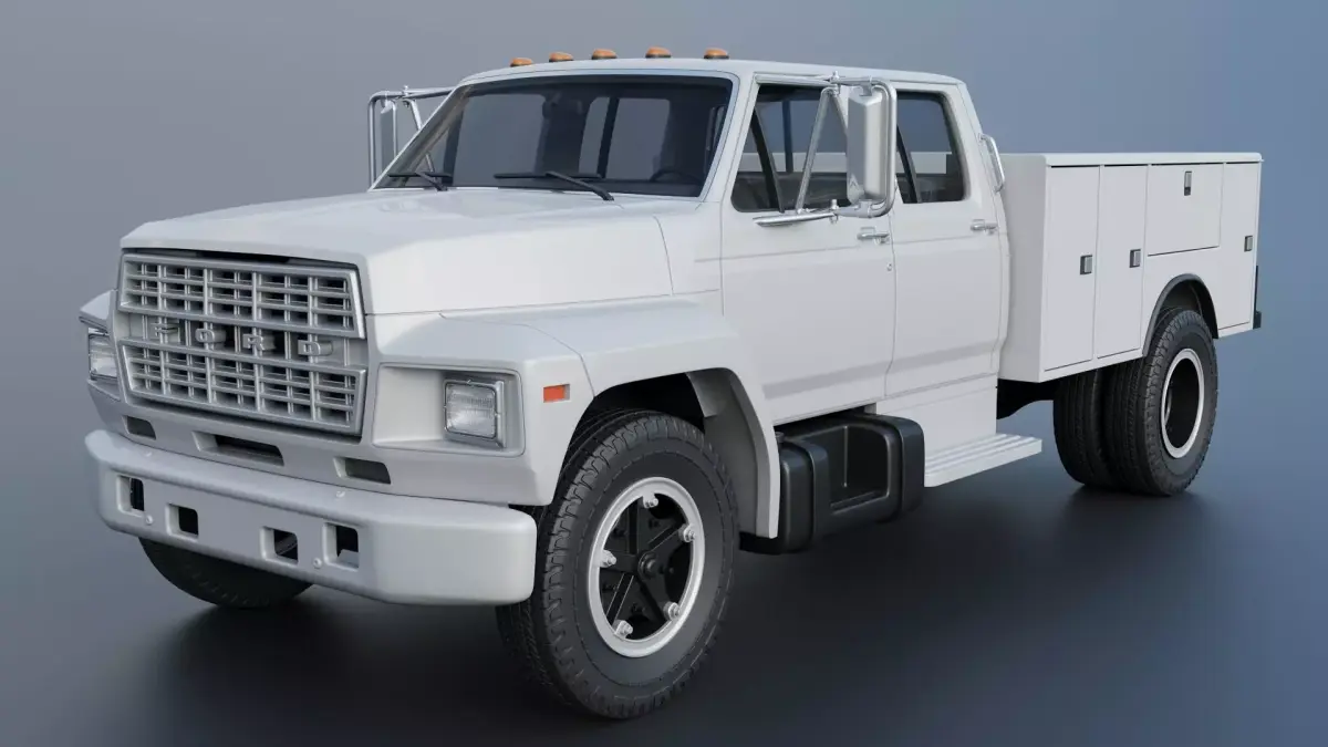 The model includes •Cab •Cab without hood •Hood •Grille •Cab divided into 3 parts •Servise bed •Bumpers •Interior •Chassis •Engine •Wheels •Tires •Windows and glass for headlights and taillights