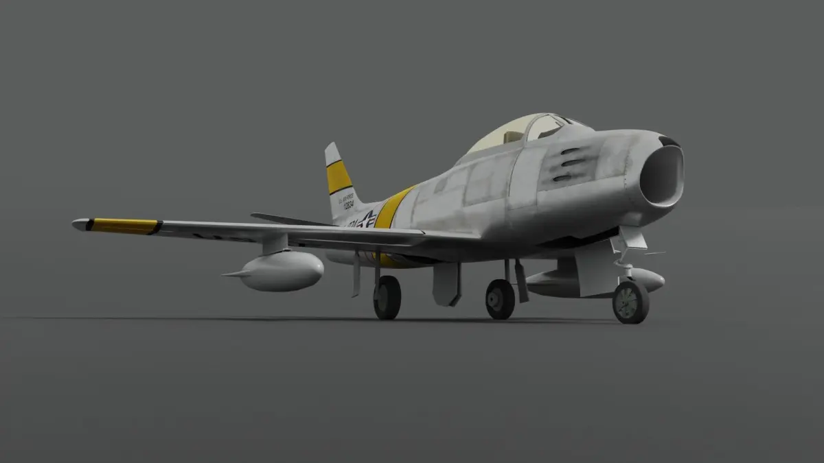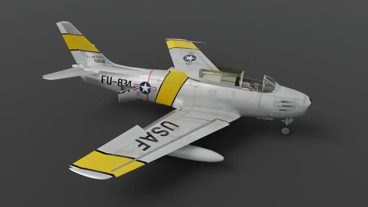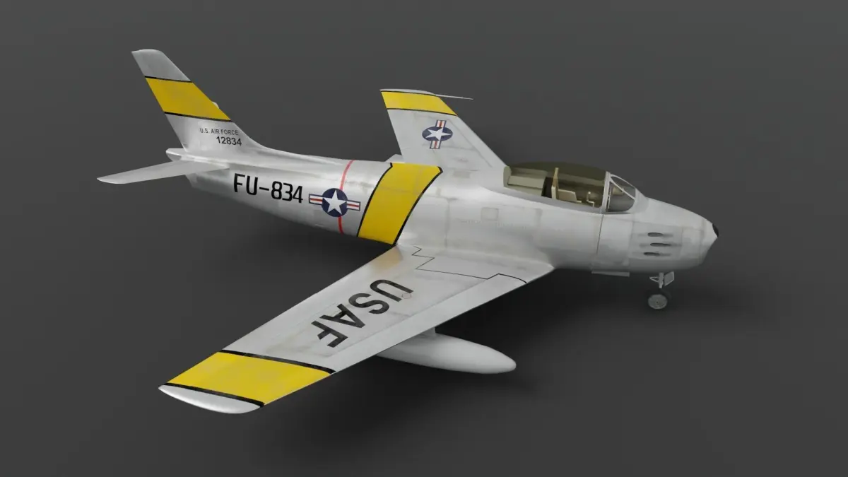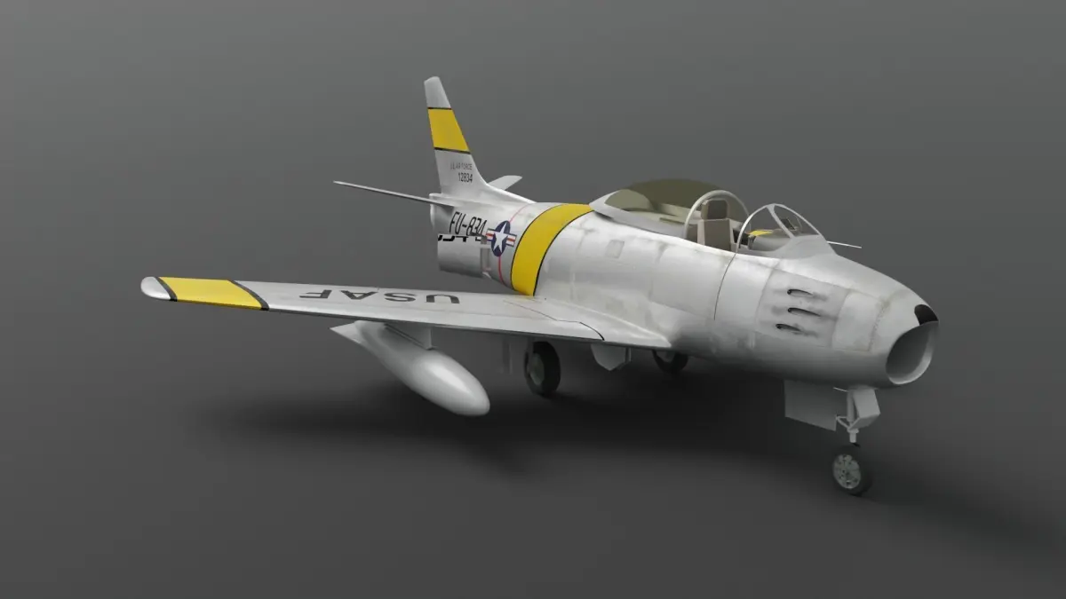 F-86A Sabre subsonic fighter high-poly model with 4k base color and roughness textures;