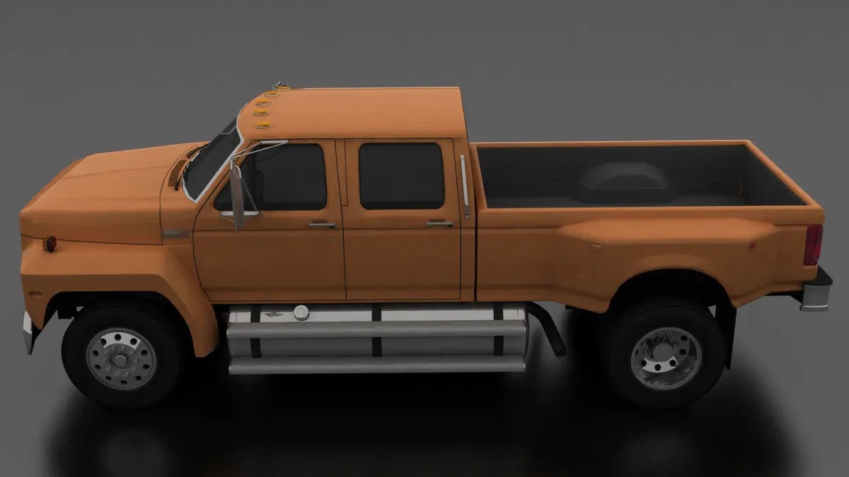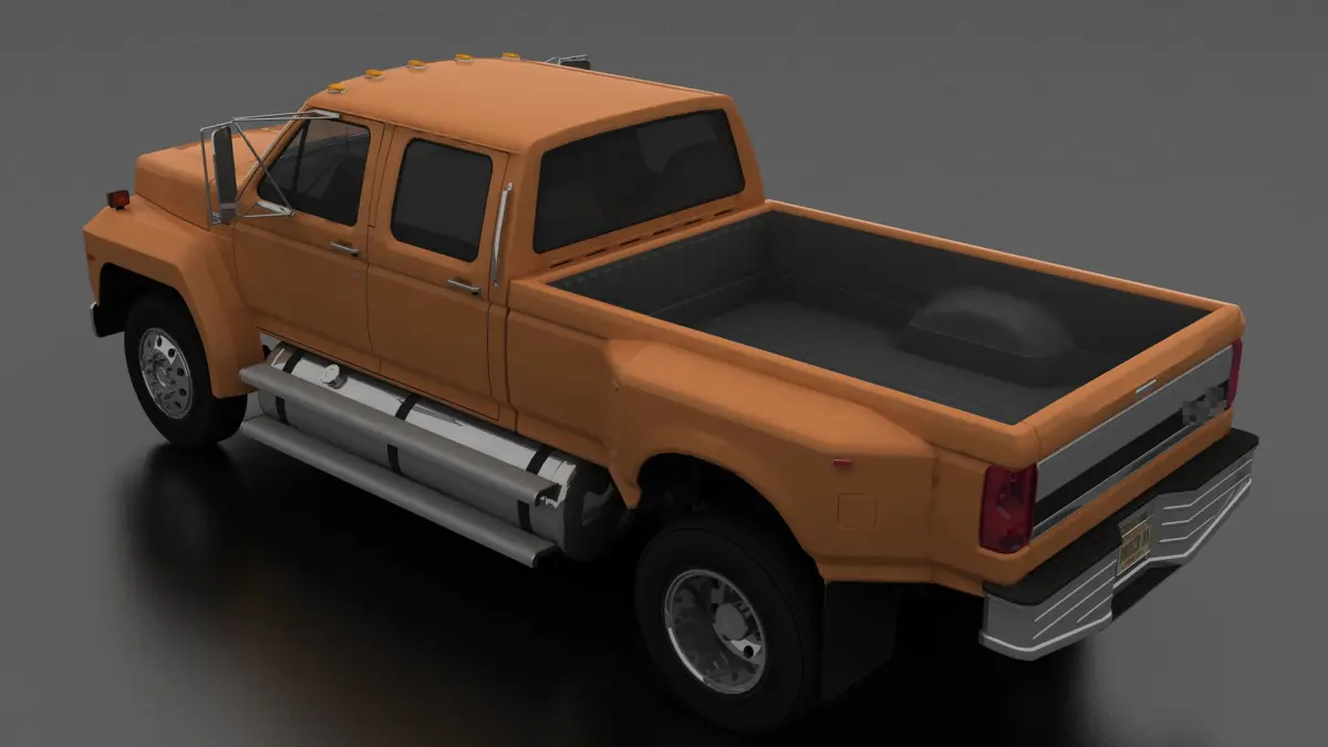 3D model of F-Series F-800 CrewCab Customized Pickup Truck 1985. Customized version of american medium duty truck produced in 1980-1998.
