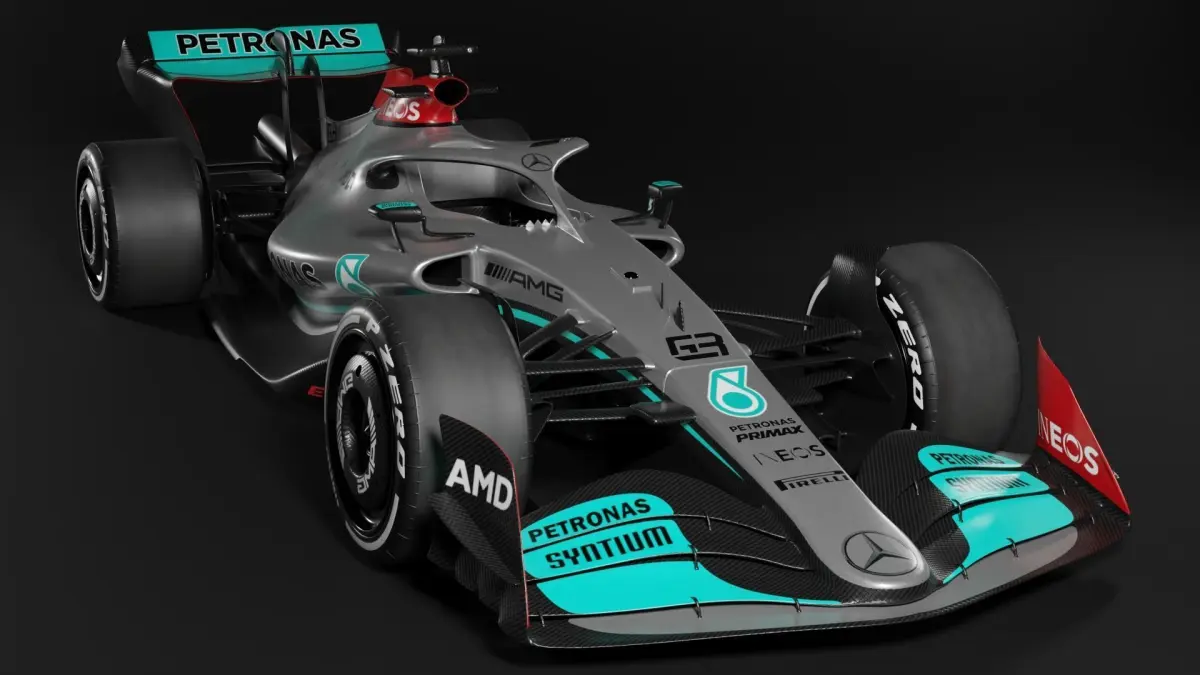 Formula 1 car modelled in stunning detail to accurately represent the new generation of F1 cars for the 2022 season. This model features the Mercedes livery as seen on the 2022 Mercedes W13 car. The model includes a fully rigged and animated DRS rear wing, removable wheels and removable front wing. The high resolution model has been baked into an optimised mesh for easy rendering and game engine use. The model is subdivision-ready with 4k textures.