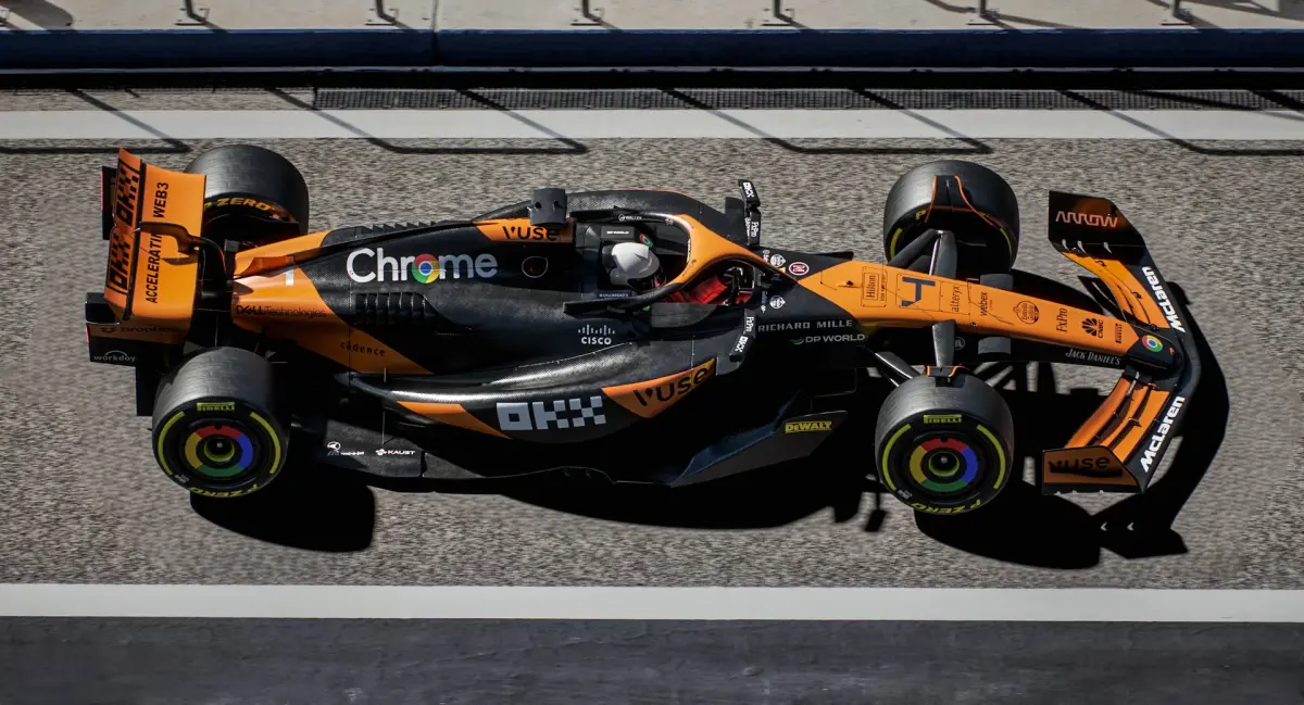 Low-poly game ready 3D model of F1 McLaren MCL38 2024 Formula 1 Race Car with PBR materials (Specular and Metallic workflows). Created particularly for computer/mobile games, VR, broadcast, advertising, visualization.