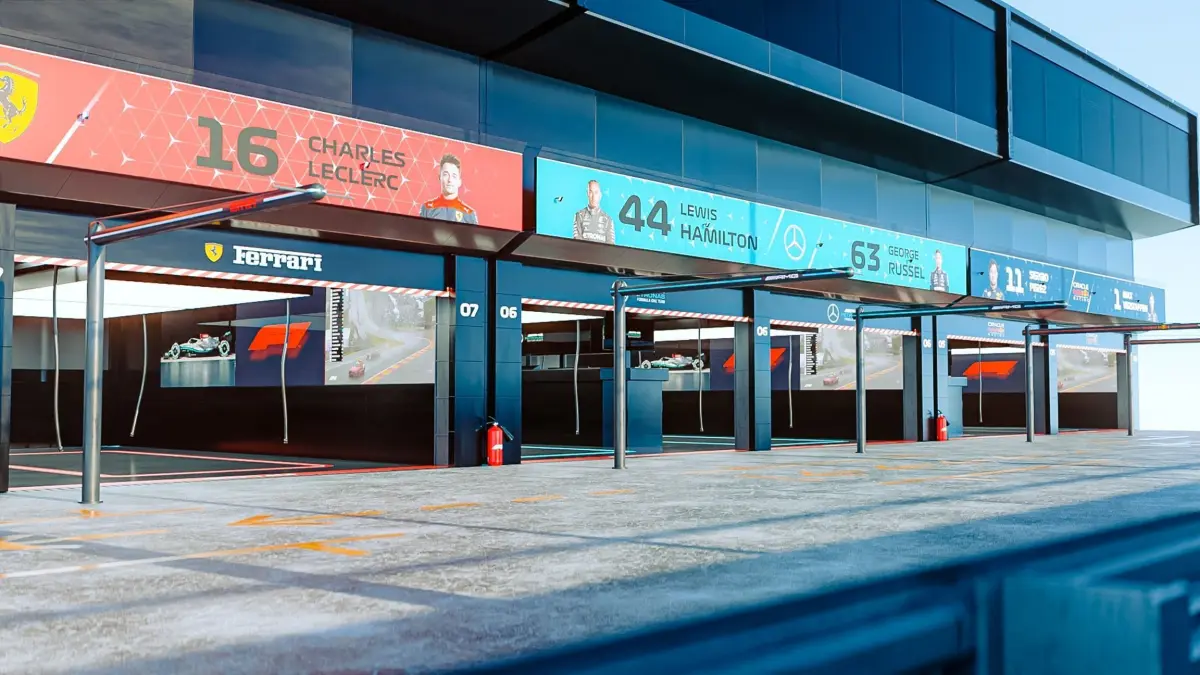 This F1 garage scene was designed and made by Artix Studios. F1 car was created by Unkredible Studio's and Chris Paul Design