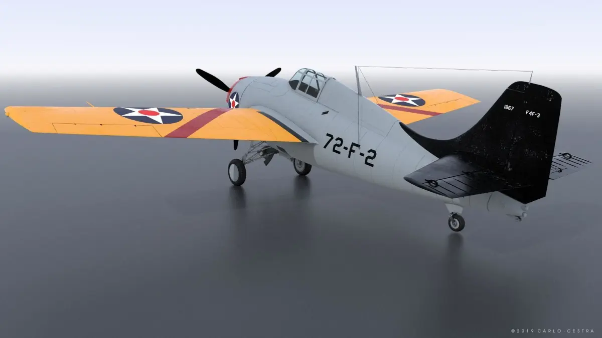Color scheme: pre-war markings of Fighting Squadron Seventy Two (VF-72) aboard CV-7 USS Wasp in early 1941. The tail color is WASP's Black and the First Section color is Insignia Red (BuNo.1867).