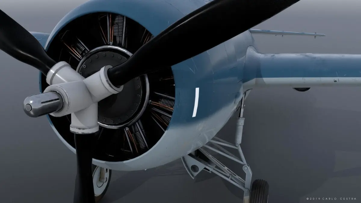 LIGHTWAVE and BLENDER - The scene contains the model with uv materials assigned and a basic setup to control each movable part, such as ailerons, rudder, elevators, propeller, cockpit hood and landing gears.