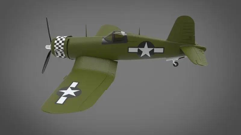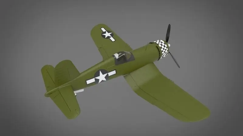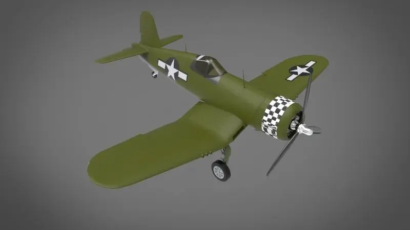 The F4U Corsair, an iconic American fighter aircraft from World War II, has been meticulously recreated as a 3D model, capturing its distinctive gull-wing design and robust frame. Known for its exceptional speed and agility, the Corsair was a formidable presence in both air-to-air combat and ground attacks. This 3D model showcases the aircraft’s detailed engineering, including the powerful Pratt & Whitney R-2800 Double Wasp engine, the armament of six .50 caliber M2 Browning machine guns, and the characteristic folding wings designed for carrier storage. Ideal for aviation enthusiasts and history buffs, the model serves as a tribute to the Corsair’s legacy, blending historical accuracy with the intricate artistry of modern 3D modeling.