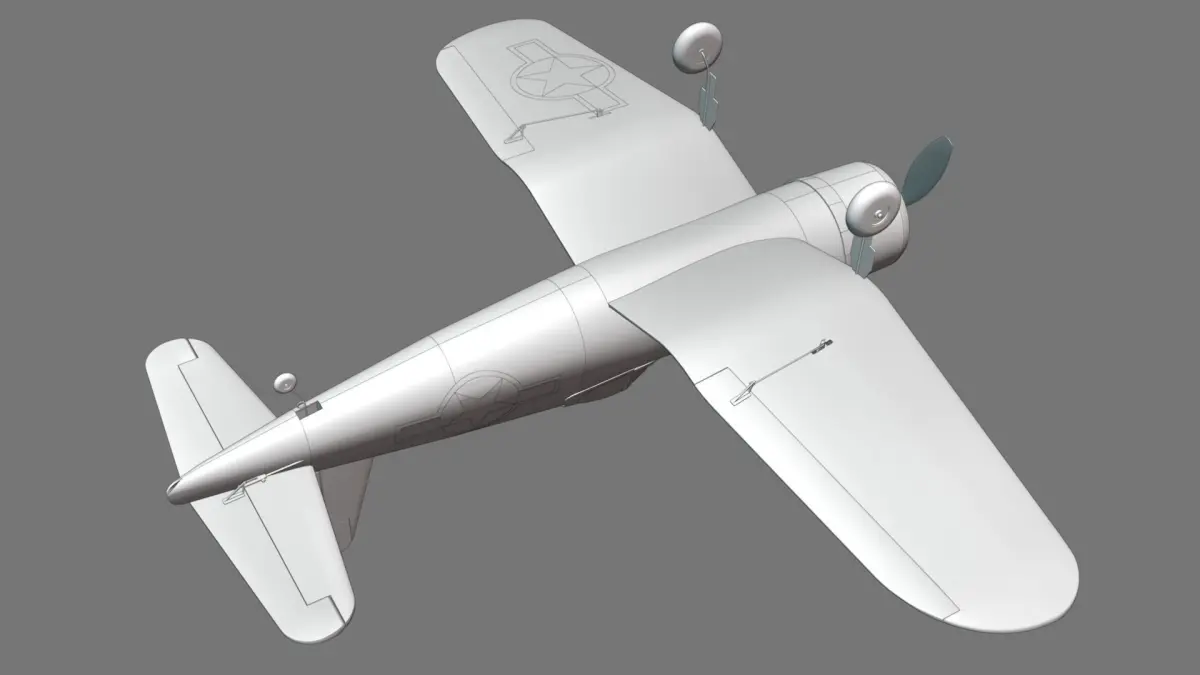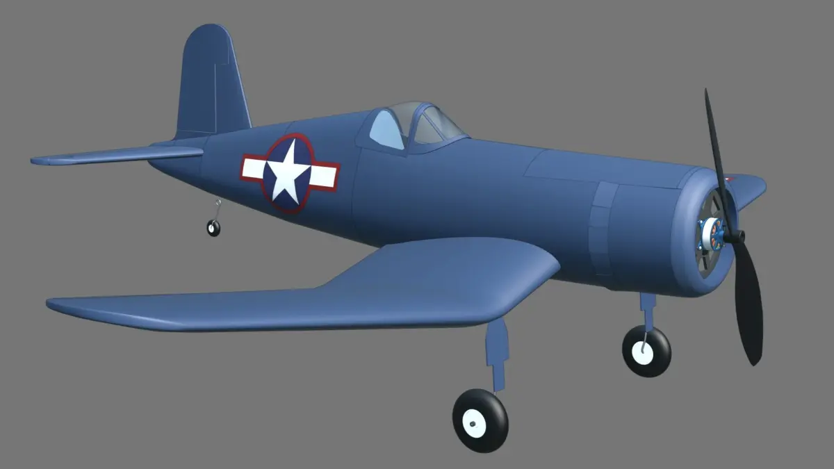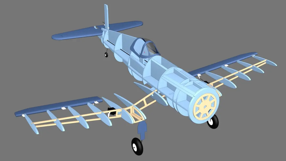 This is a 3D model of a radio-controlled airplane made of XPS foam, balsa and plywood.