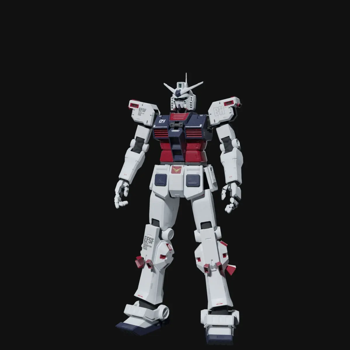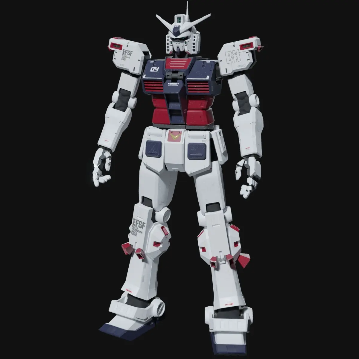 This 3D model is FA-78 Full Armor Gundam (Thunderbolt Ver.) with old weathering, the model is 1:1 scale (cm). The body and armor also have joints and constraints.