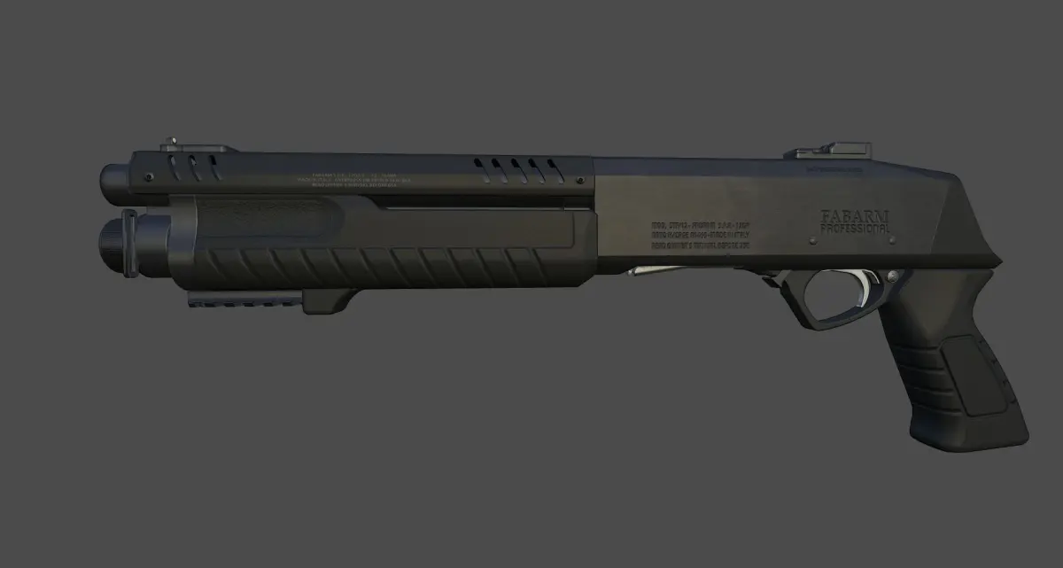 Low Poly Shotgun Fabarm STF12 short. OVERALL LENGTH 21” / 53 cm