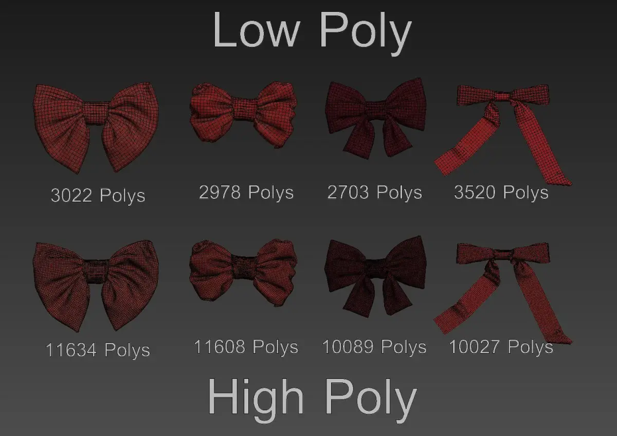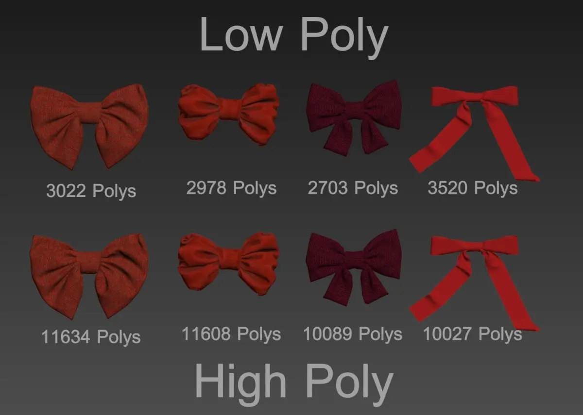 4 differents bows in 2 versions : high poly an d low polyhigh quality quad modeling