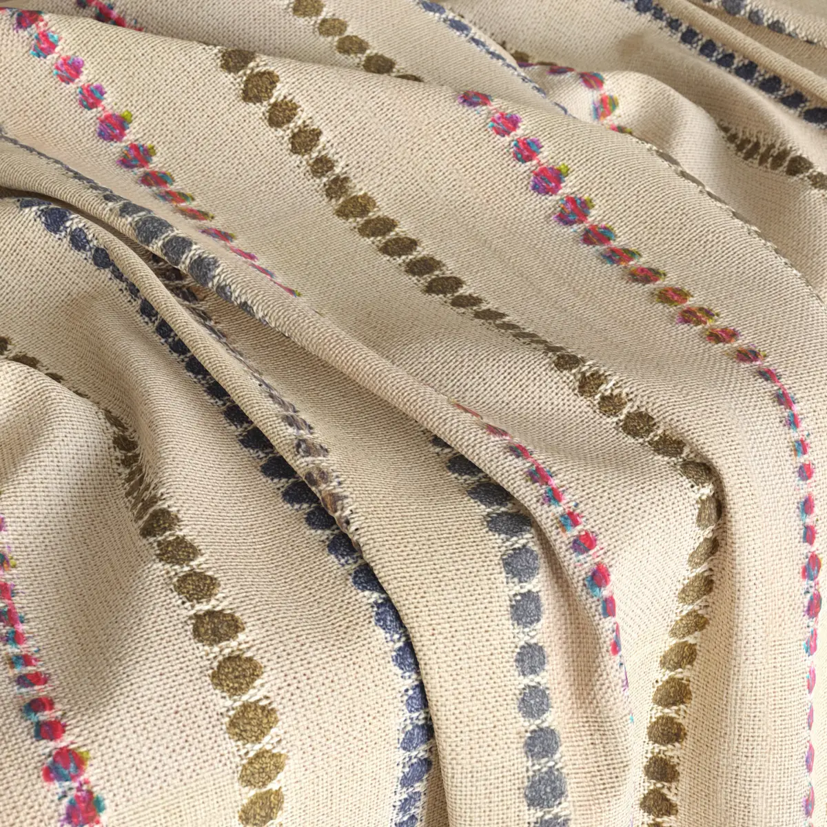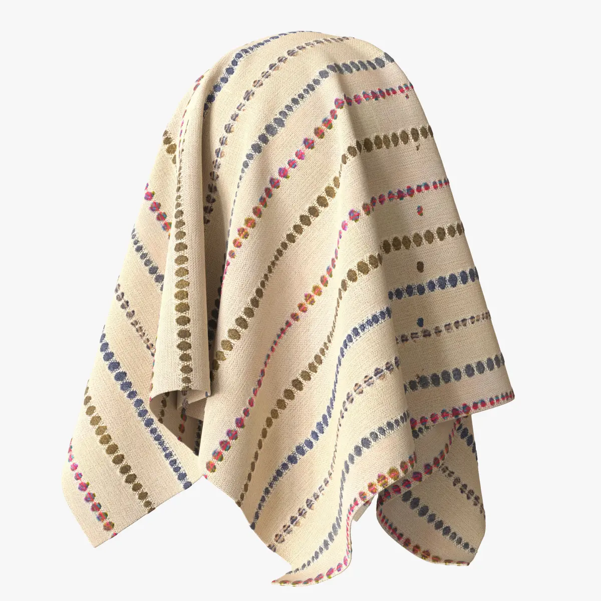 There are ready-made materials for 3ds max Vray\Corona users with a floating controller to control tiling in the material editor. If controller dont appear choose nods with maps, right click and select show additional parameters. But you can use any application with these maps and get very close results to the preview images.Archive dont include any mashes from preview except optimized fabric ball.