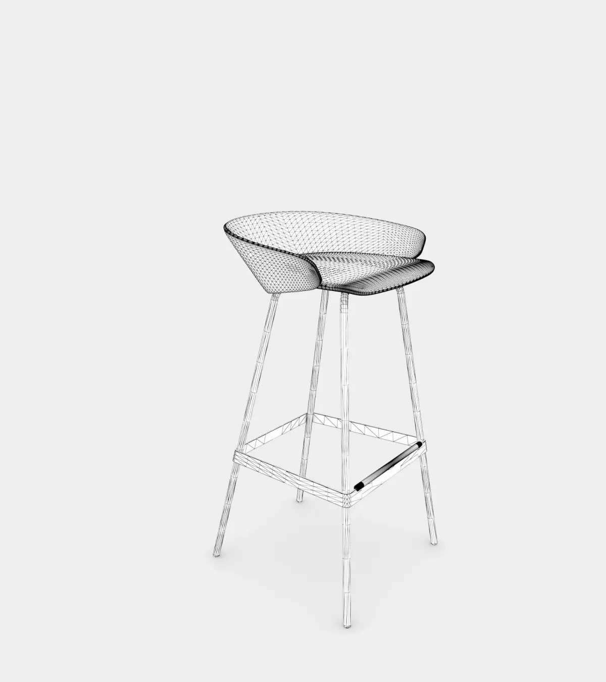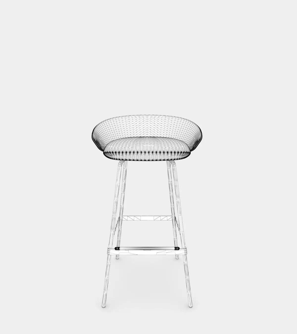 Photorealistic 3d stool with a gray fabric seat and metal legs