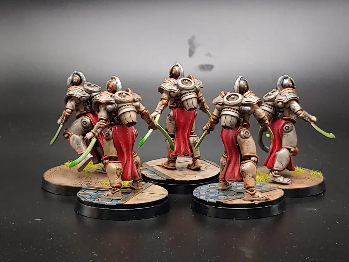 Fabricarii Mannequin Model V'sThe Model 5 mannequins are a solid backbone for many fabricarii forces. Although jump troops, they are capable of holding a close quarters assault or heavy weapons role. They are the fast responders to fill any nich in a battle line.
