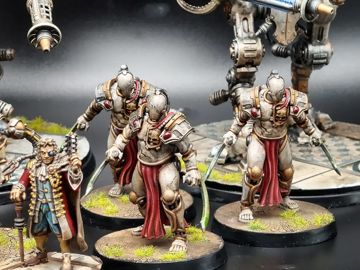 The Fabricarii Houses:The Noble houses fabricar are, perhaps, the most technologically advanced society on terra. Many are their illustrious halls of devices, radiant in ancient gold and marble.In war only a very few organic beings are ever seen, the majority of their hosts seeming to be living statues, or great engines emitting deadly light.In truth the Fabricarii are a decadent society in decline, their numbers ever dwindling, and their self importance preventing them from seeing even their greatest flaws.