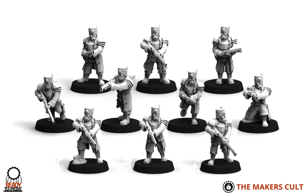 The Primus Scion Recruits is a multi-part kit that allows you to build a squad of recruits. It comes with optional heads in two styles, various rifle arms and 10 body poses that can be mirrored for another 10.