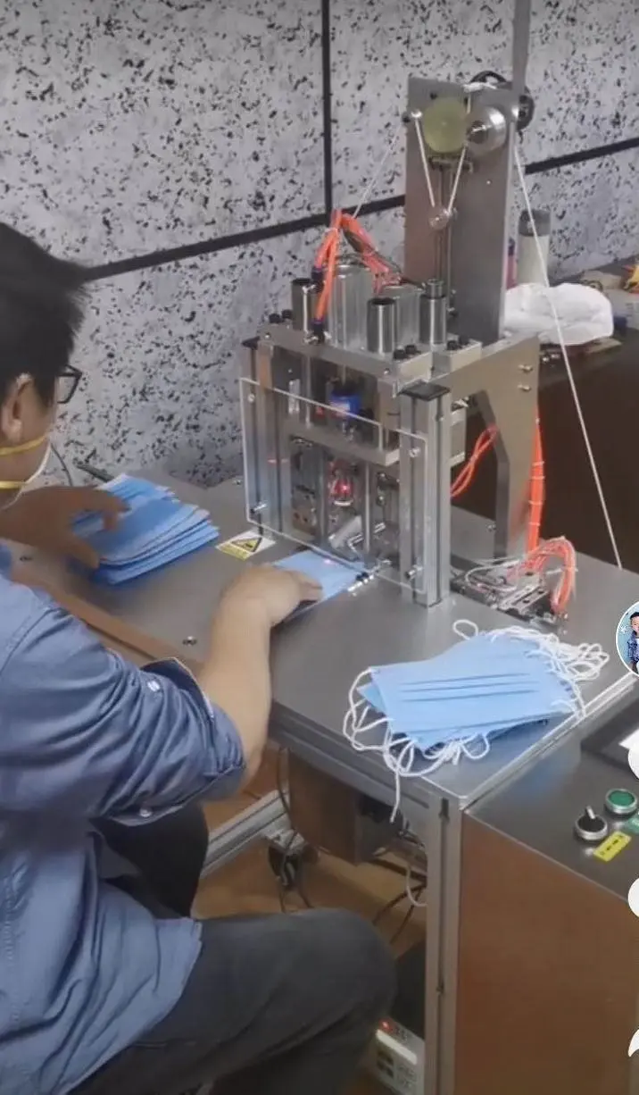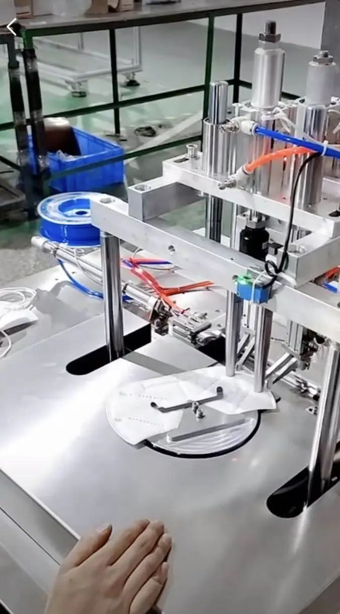 Face mask and N95 mask ear band ultrasonic welding machineThe machine consists of semi-automatic ear band welding machine and assembly line ear band welding machine. The machine can cooperate with semi-automatic mask production equipment to do the final ear band welding