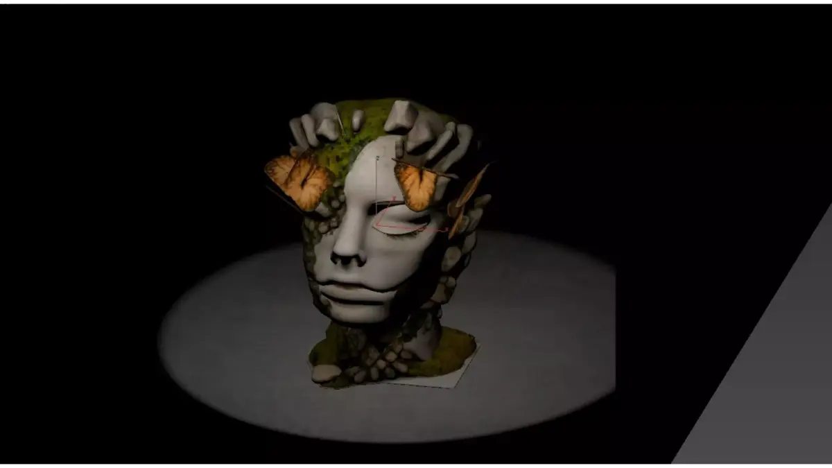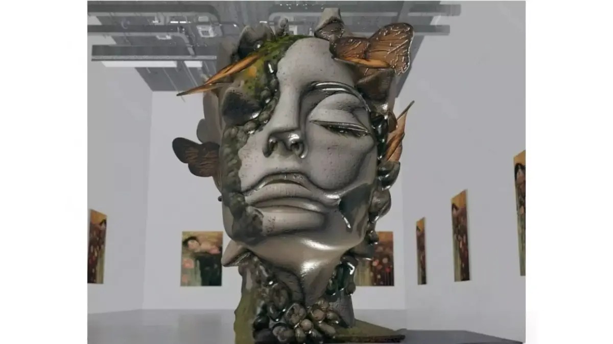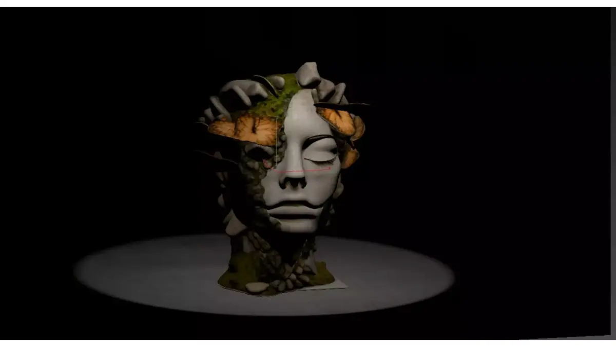 This is a modern installation sculpture that combines natural elements with human face form. Featuring a closed-eyed human face as its main body, one side integrates textures of moss and rock, complemented by butterfly decorations, presenting the ecological aesthetics of harmonious coexistence between humans and nature. It is often used as an internet-famous photo spot decoration in art galleries and commercial spaces (cafés/bars), boasting both artistic appeal and ambient atmosphere.