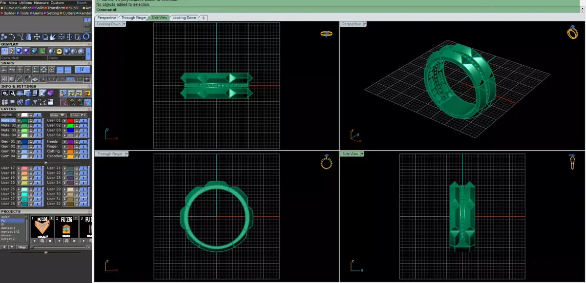 This gold ring showcases a bold faceted design with sharp geometric surfaces that create a powerful and contemporary visual presence.The central channel is accented with precision-set brilliant stones, adding depth and contrast while maintaining a strong architectural balance.The wide band and multi-faceted outer structure enhance light reflection and give the ring a refined yet commanding character.The inner shank is carefully designed for comfort, while the overall thickness and proportions are optimized for casting and finishing efficiency.All production tests have been successfully completed, and the model has passed every technical requirement without any issues.This ring is fully prepared for manufacturing and suitable for high-end jewelry production.Thank you for your attention and trust in a design developed with precision, durability, and modern aesthetics.Visit our page to see more luxury rings Approximate Weight 4– 5grams (depending on ring size and material)