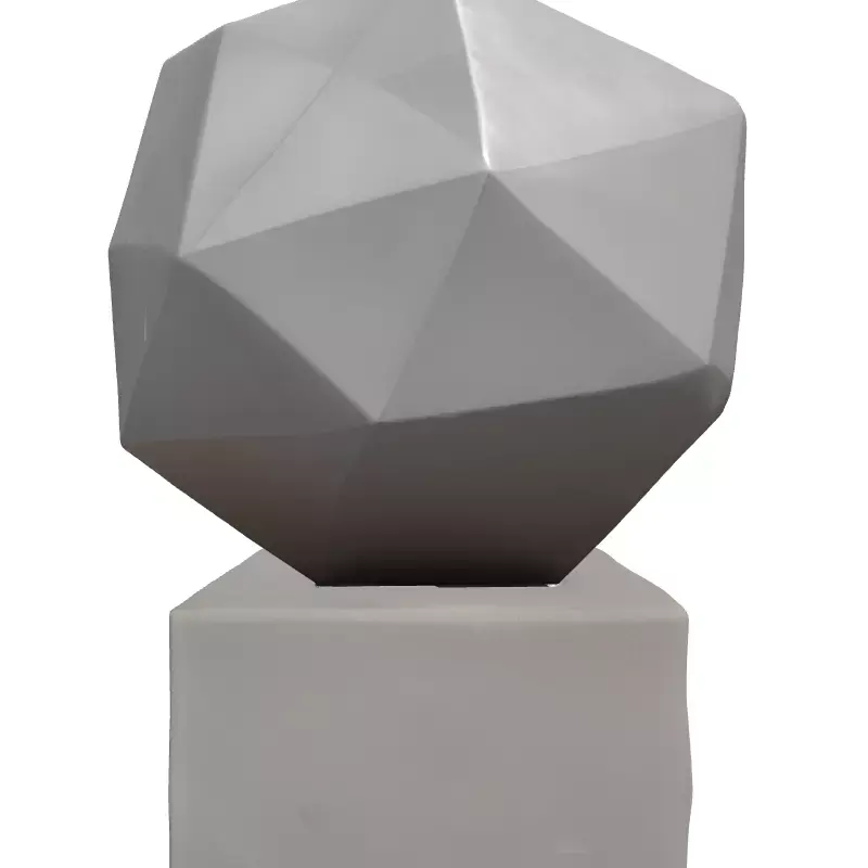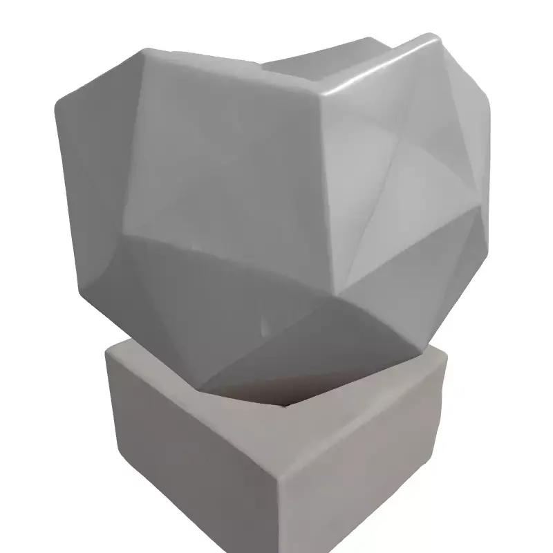This exquisite 3D model presents a modern and abstract decorative object, featuring a distinctive faceted geometric form atop a sturdy cubic pedestal. Crafted with a clean, low-poly aesthetic, this piece embodies contemporary minimalism and sophisticated design, ideal for enhancing any virtual space. It's perfectly suited for a wide array of applications, including interior design visualizations, architectural renderings, virtual staging, and as a stylish prop within game environments or augmented reality (AR) experiences. The model boasts optimized geometry with clean topology, ensuring smooth performance in real-time applications while remaining suitable for high-quality static renders. It is UV unwrapped for easy texture application and includes PBR (Physically Based Rendering) ready textures to achieve realistic material representation, mimicking concrete or stone. The design's simplicity and elegance also make it an excellent candidate for 3D printing, allowing for the creation of a physical decorative item. Supported file formats include GLB, OBJ, STL, ABC, DAE, FBX, USD, and PLY, ensuring broad compatibility across various 3D software and platforms. This versatile asset provides a touch of modern artistry to any project.