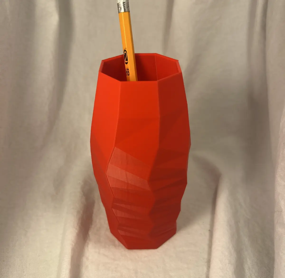 The Faceted Cup Vase is a stylish 3D printable vessel featuring sharp geometric surfaces and a smooth inner cavity. Its elegant, modern design makes it perfect as a minimalist vase, pen holder, or decorative piece. The angular facets catch light beautifully, making it an eye-catching addition to any desk, shelf, or workspace.