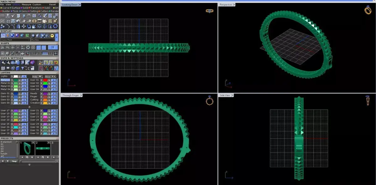 This faceted pyramid closed bangle bracelet is a high-detail professional jewelry 3D model created specifically for manufacturing and production workflows.