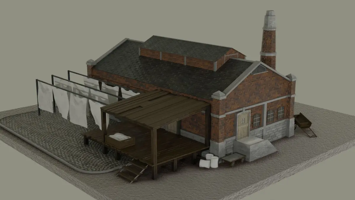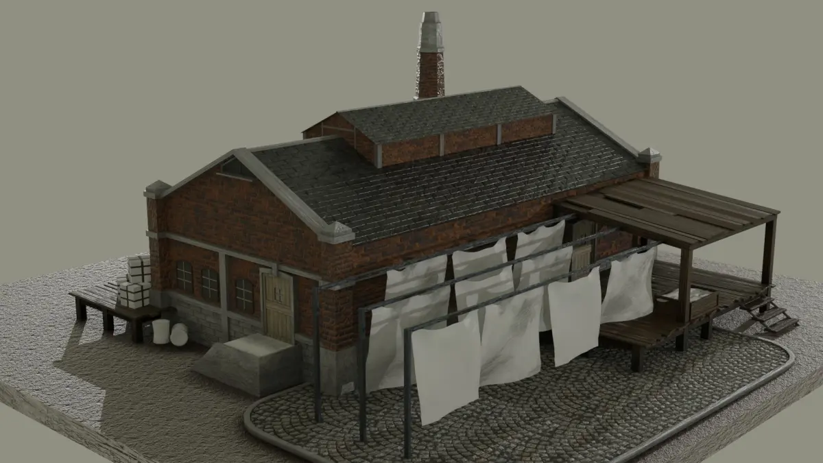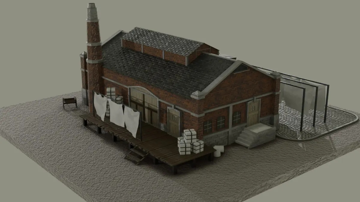 It's a factory i made with blender inspired by anno 1800 factory It's my first project so be indulgent please :)Main wall is in brick there is woodplanks i made by myself