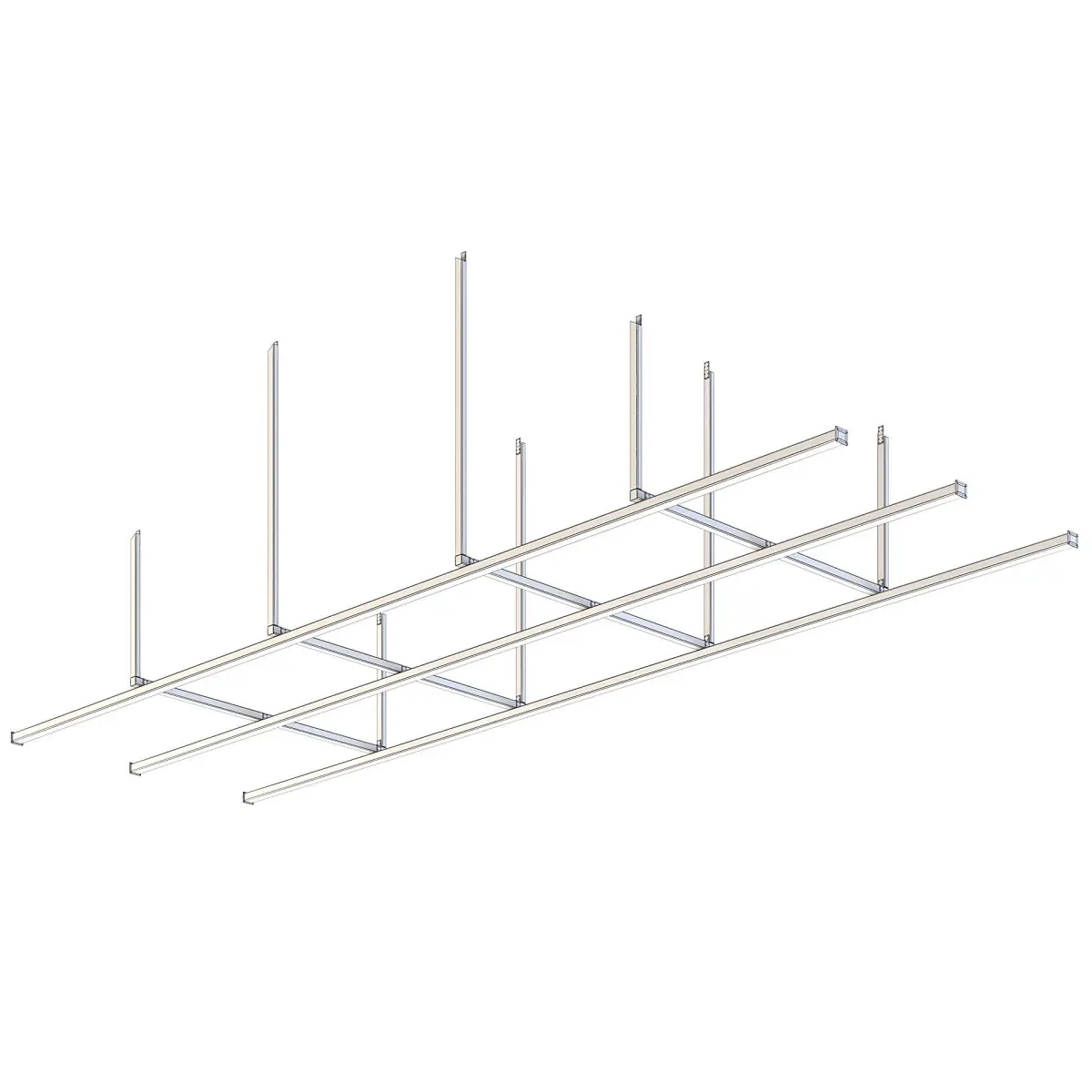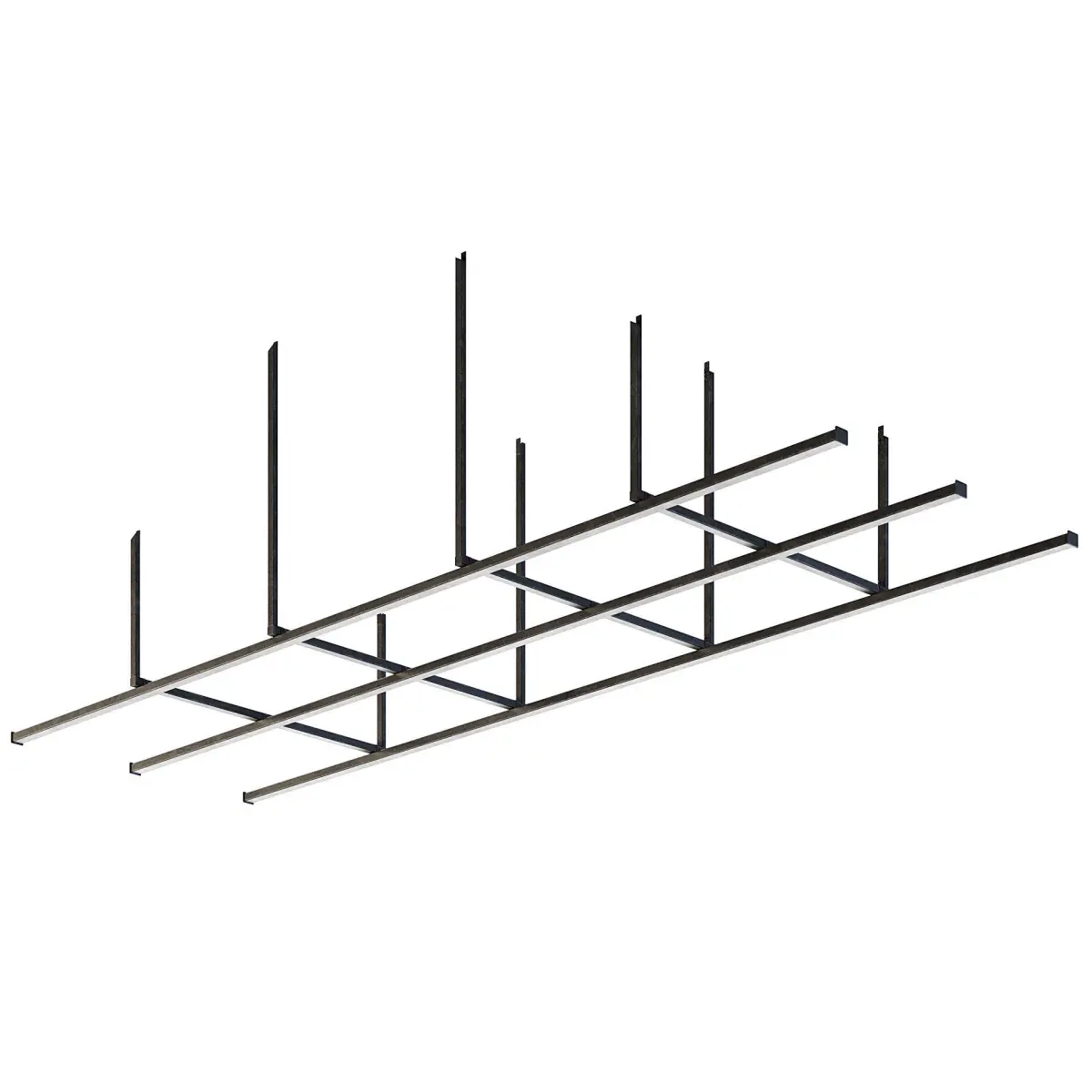 Old and scratched factory ceiling beams grid.
