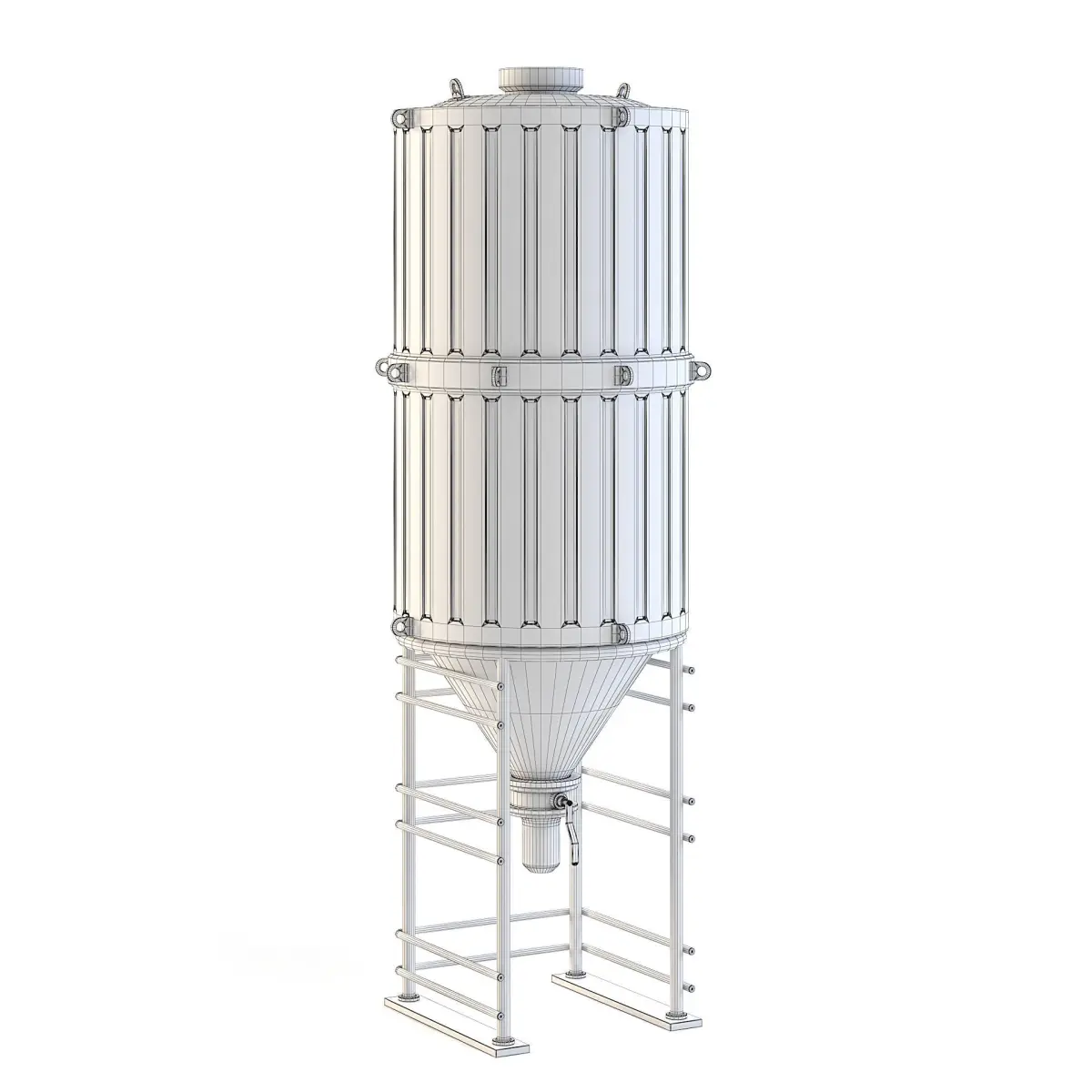 Tall blue factory liquid container.