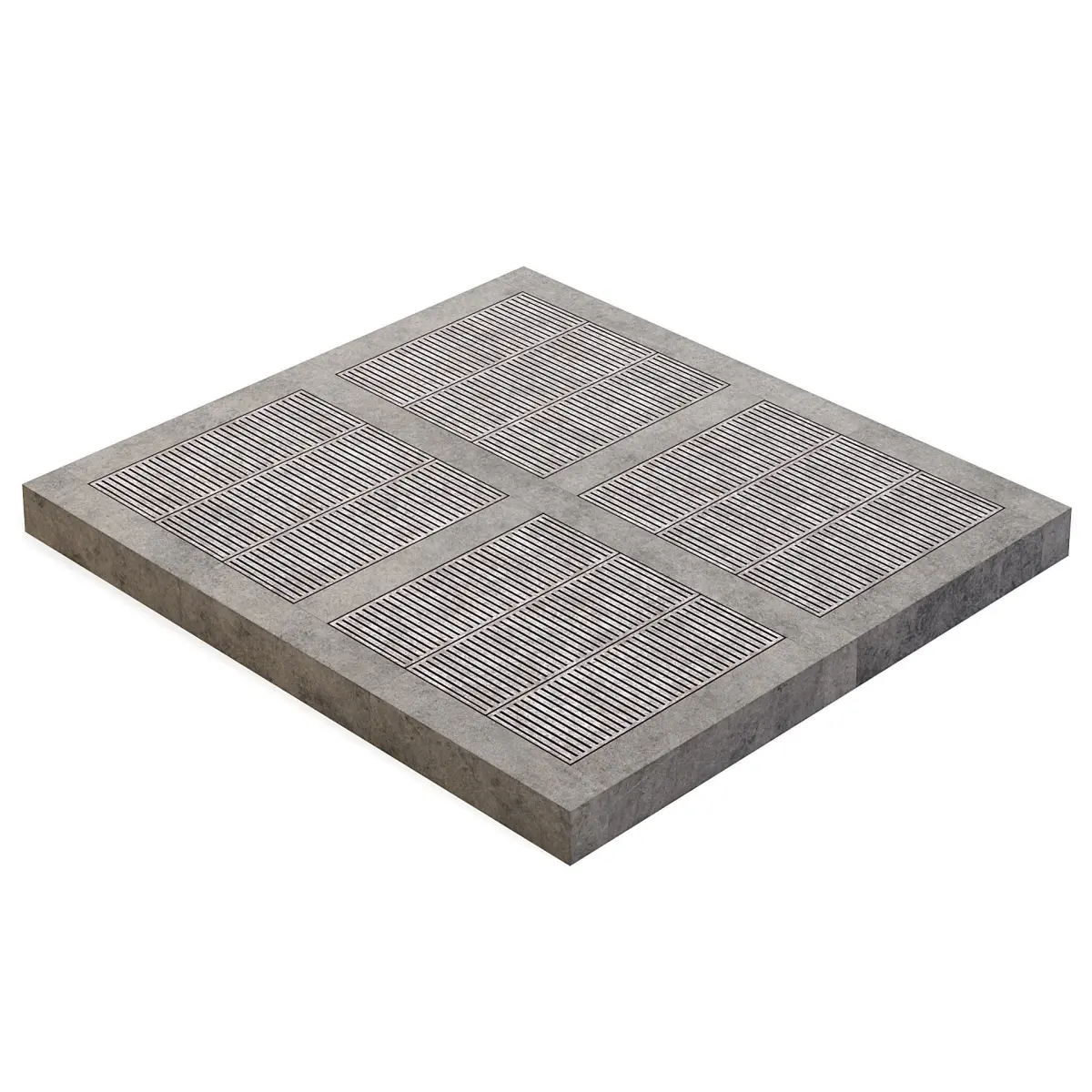 Concrete factory floor with grates.