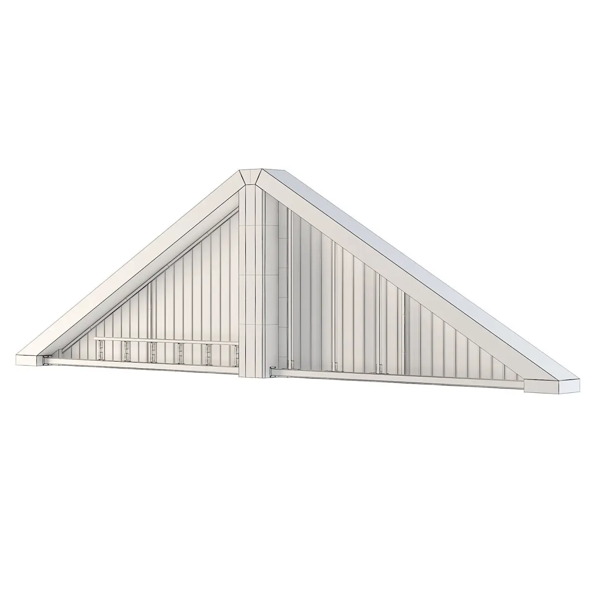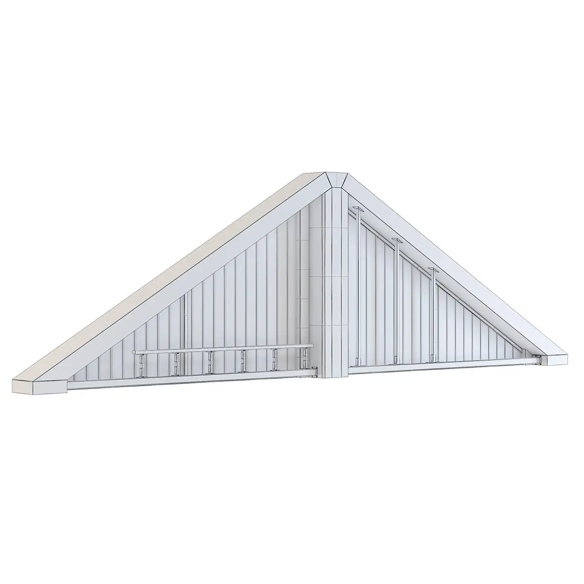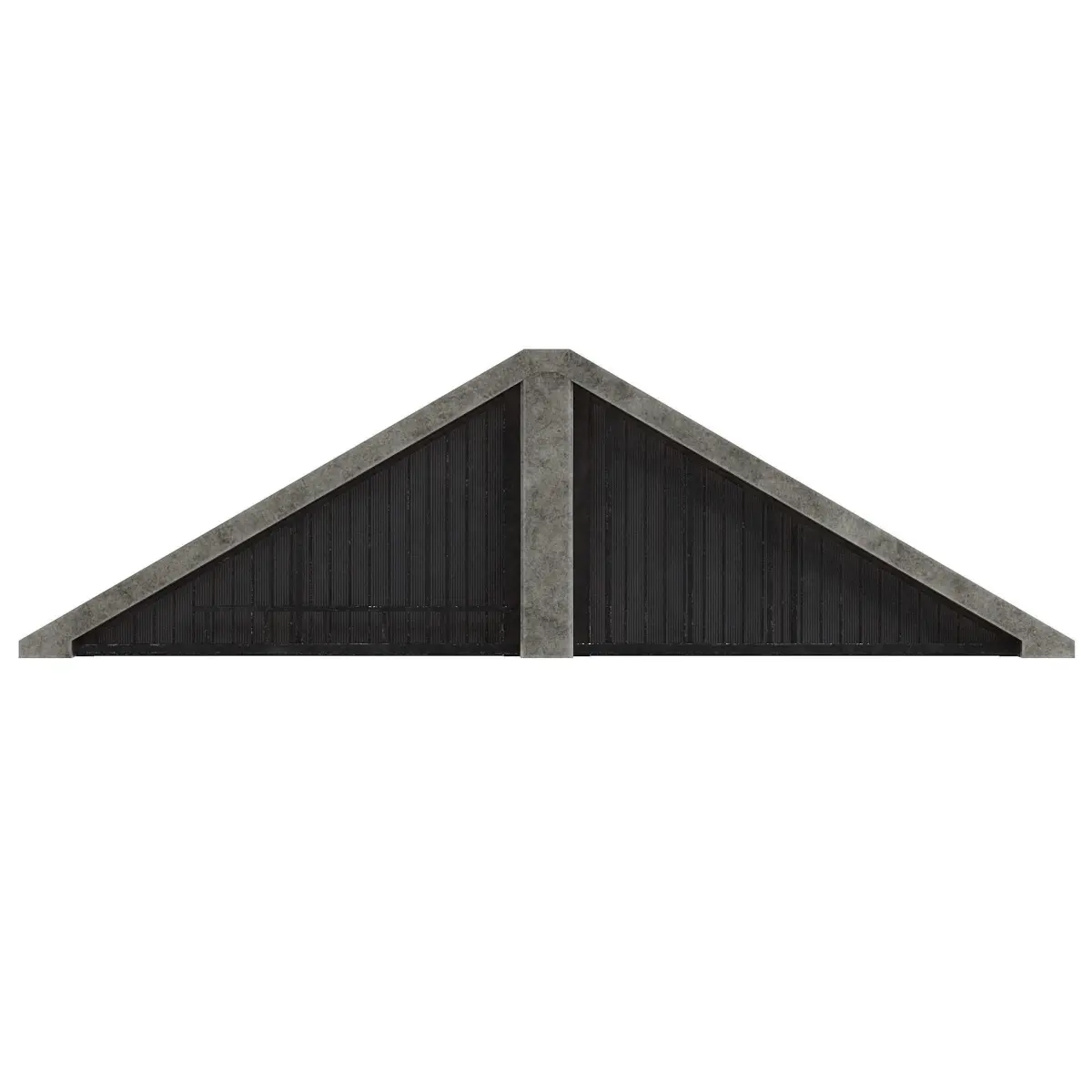 Concrete factory front wall upper triangle with metal panels.