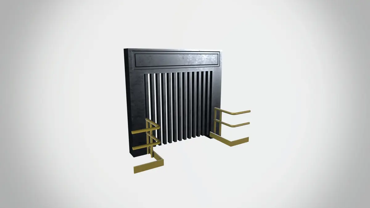 - Whether used in a factory, warehouse, or contemporary office space, this black and gold factory lift door with a metal bar is sure to make a statement while serving its practical purpose with style.