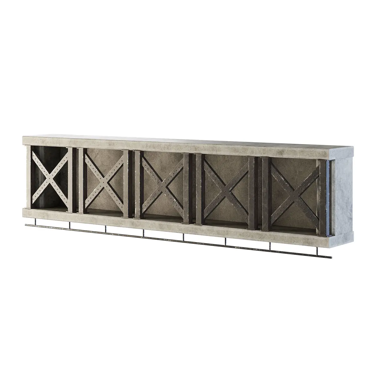 Old factory concrete wide wall upper element reinforced with metal.