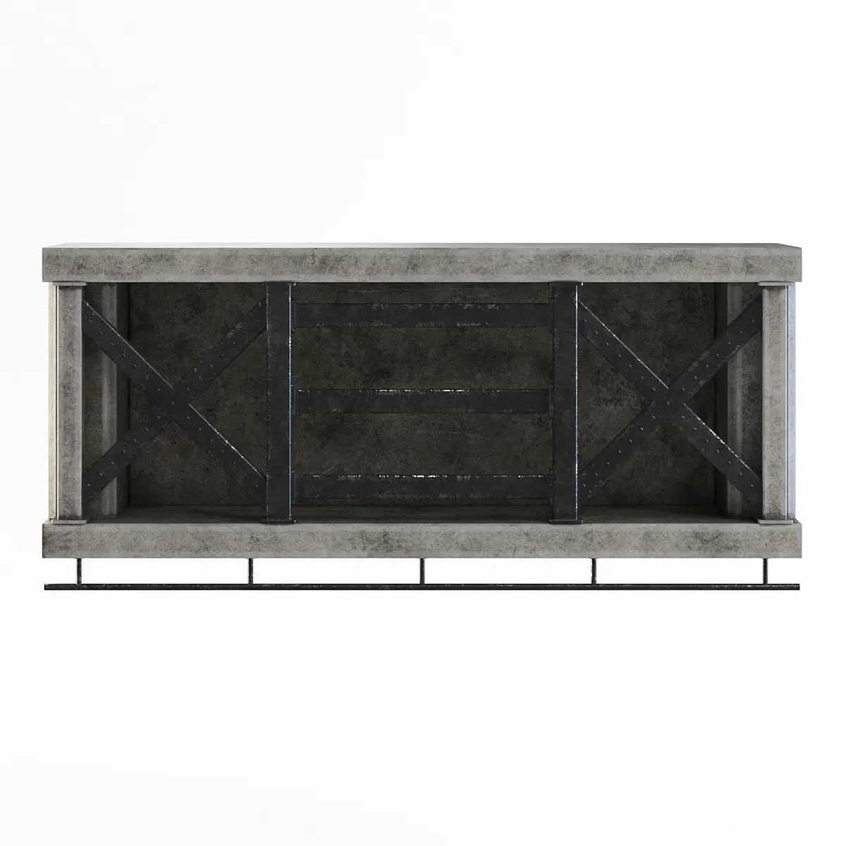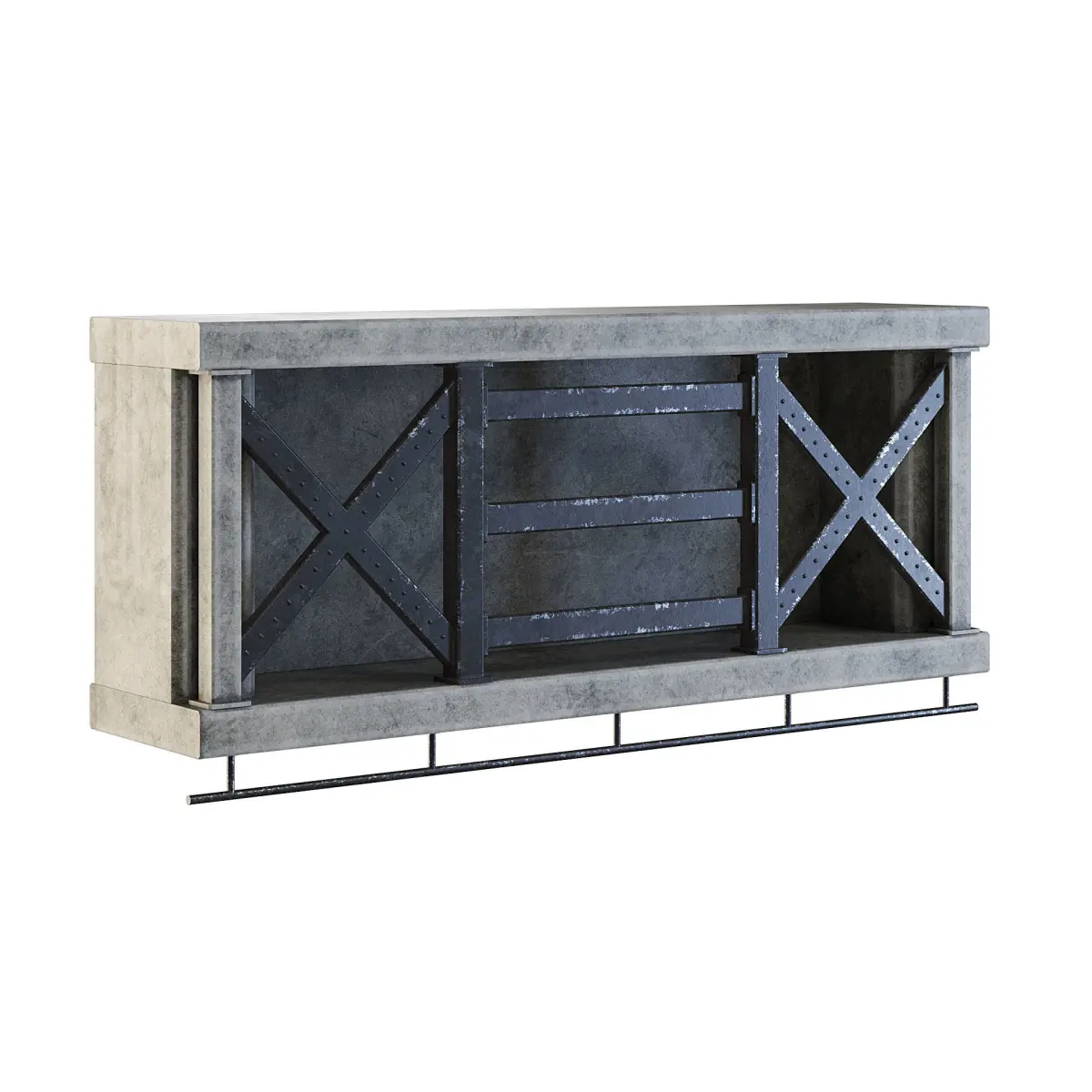 Old factory concrete narrow wall upper element reinforced with metal.