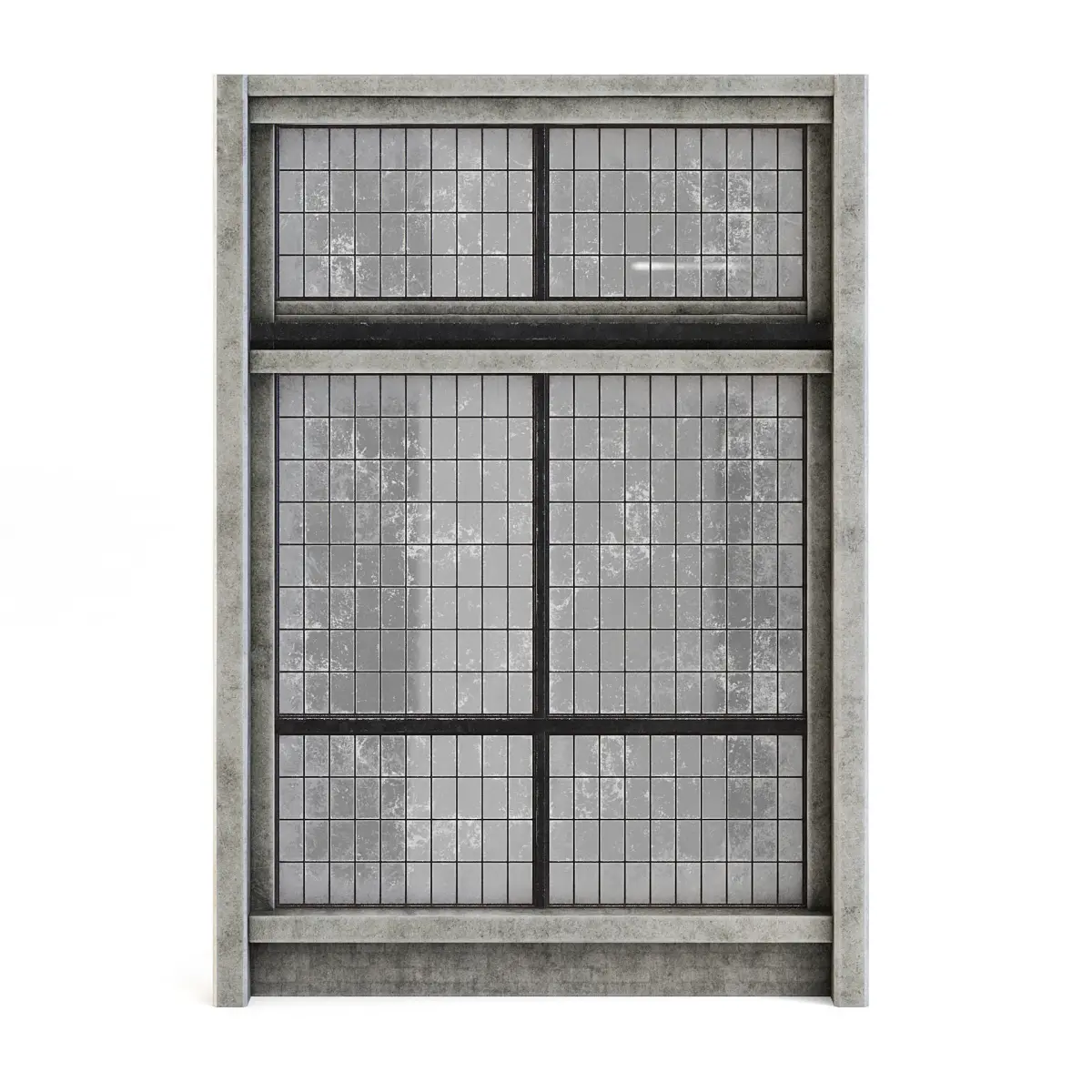 Old factory concrete wide wall with windows.