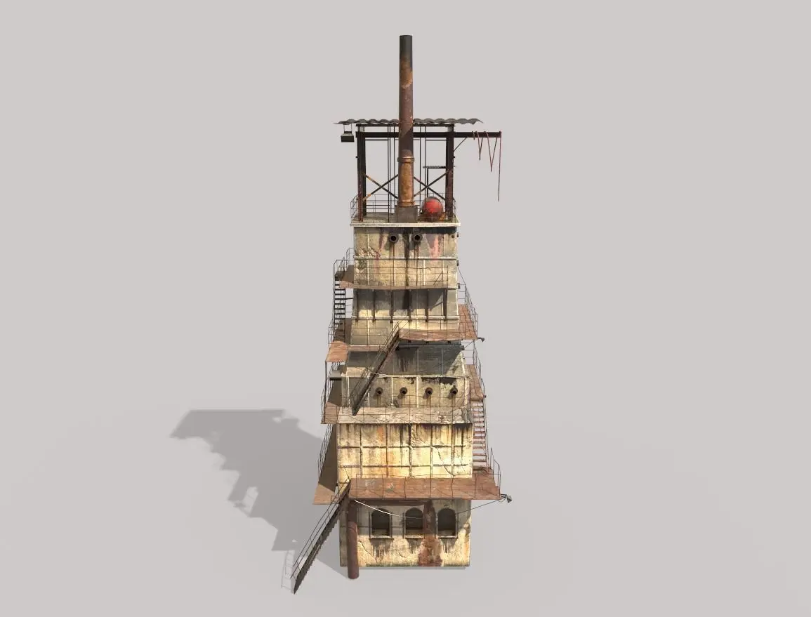 Model of factory tower. Model is very realistic.It has 6 PBR material.Maps are diffuse-specular-glossiness-height and normal. Model's textures has 4096X4096 and 2048x2048 in sizes. All maps are PNG formats and unwrapped.
