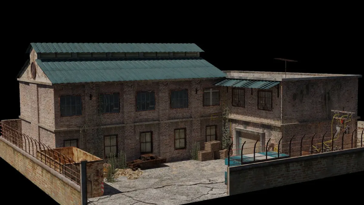 Closed factory warehouse model for a variety of use case main building is low poly made up only on a plane with a texture on it but all the additional items in the scene have good no. of polygons so you can easily replace some of the element from the scene as per your convenience to further reduce the number of polygons...